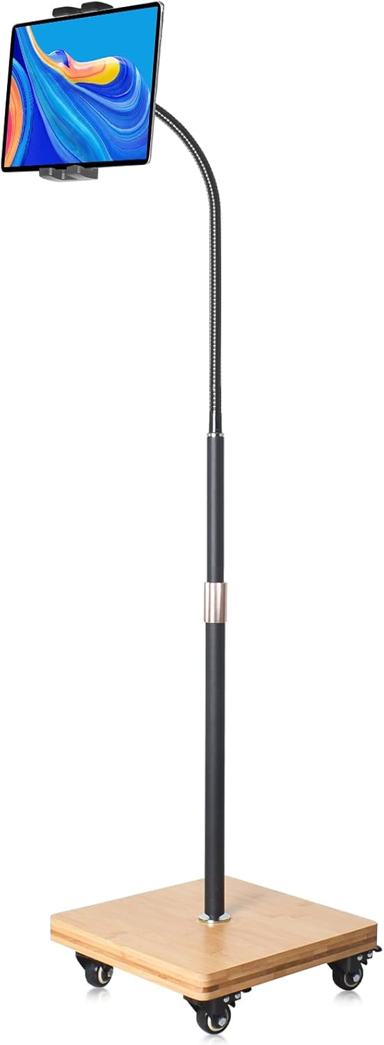 wishacc Tablet Floor Stand for Bed - Gooseneck Tablet Holder Mount with Adjustable Height and 4 Wheels, Compatible with iPad mini Air Pro 12.9/9.7, Galaxy Tab, Kindle, Cell Phones (4.7"-13")