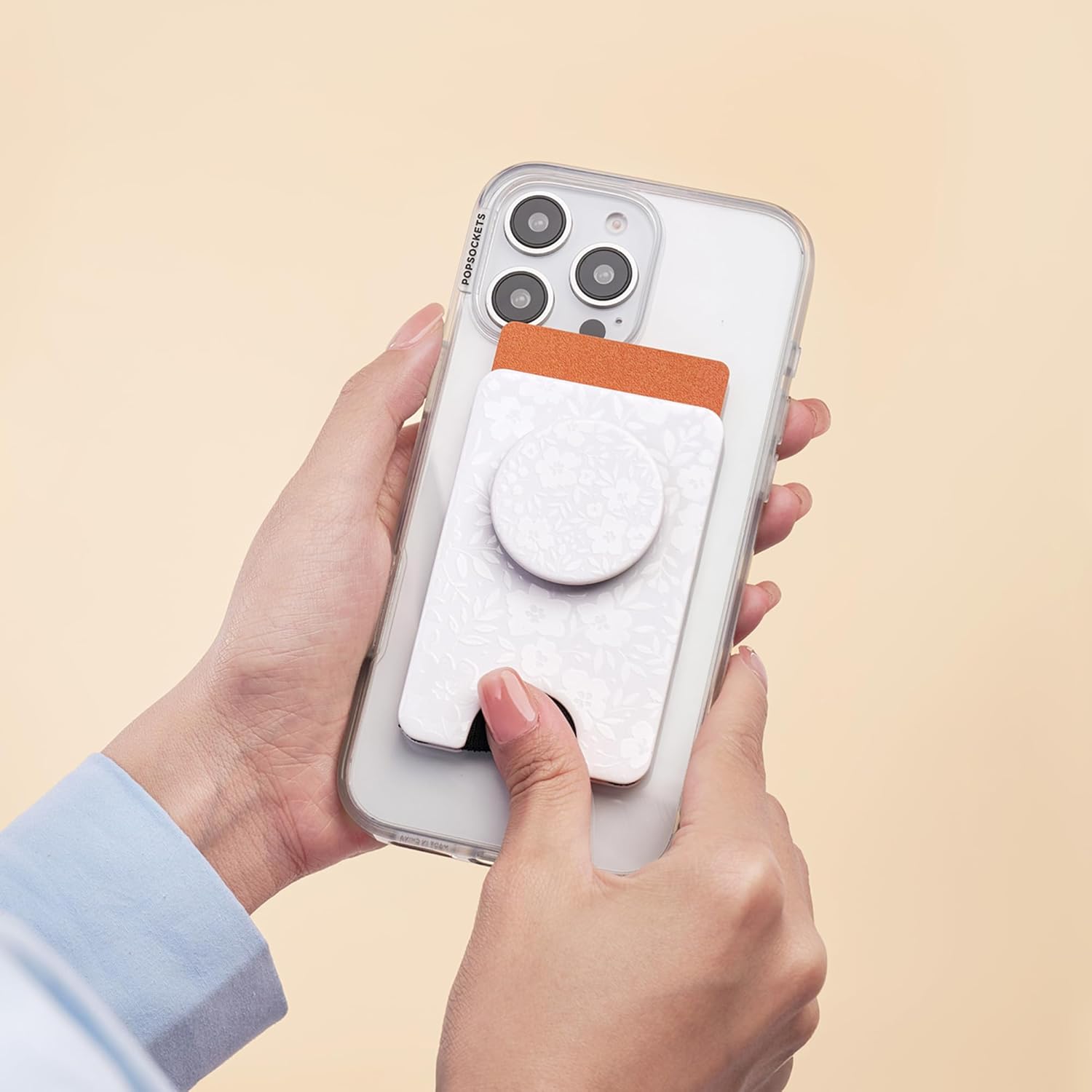 PopSockets Phone Wallet with Expanding Grip and Adapter Ring for MagSafe, Phone Card Holder, Wireless Charging Compatible, Wallet Compatible with MagSafe, Cute PopSockets - Blanc Fresh
