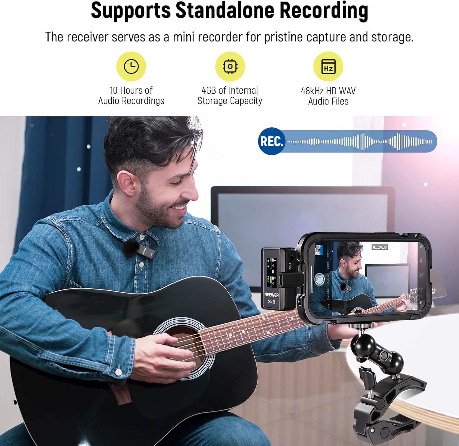 - 【Professional Wireless Lavalier Mic Set for Camera】 NEEWER CM28 is a mini Wireless Clip on Lapel Microphone kit with 2 transmitters (TX) and 1 receiver (RX). They can operate for 9 hours (TX) and 8 hours (RX) once fully charged, ideal devices for outdoor audio & video recording, stage, vlogging, podcasting, interview, and live streaming. Charge them twice in just 1.5 hours each time with the included protective charging case.