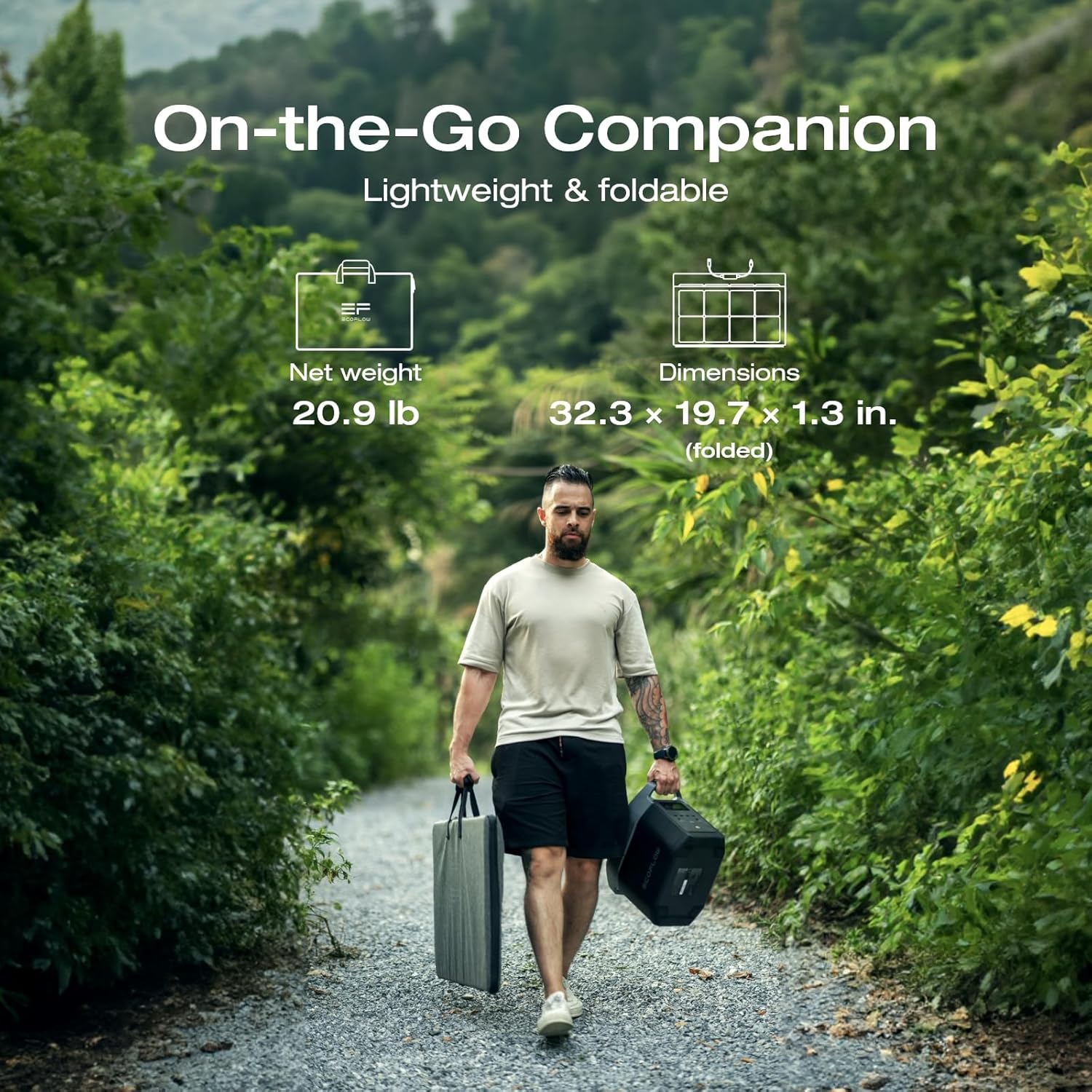 - Light and Durable. The 220W Solar Panel is foldable and comes with an adjustable carry case. Weighing in at 20.9Ib only , it can be easily packed up and carried with you, no matter where you go. Made from layers of flexible EVA and tough fibreglass, it also comes with a IP68 Waterproof rating, meaning it is dust and water tight.