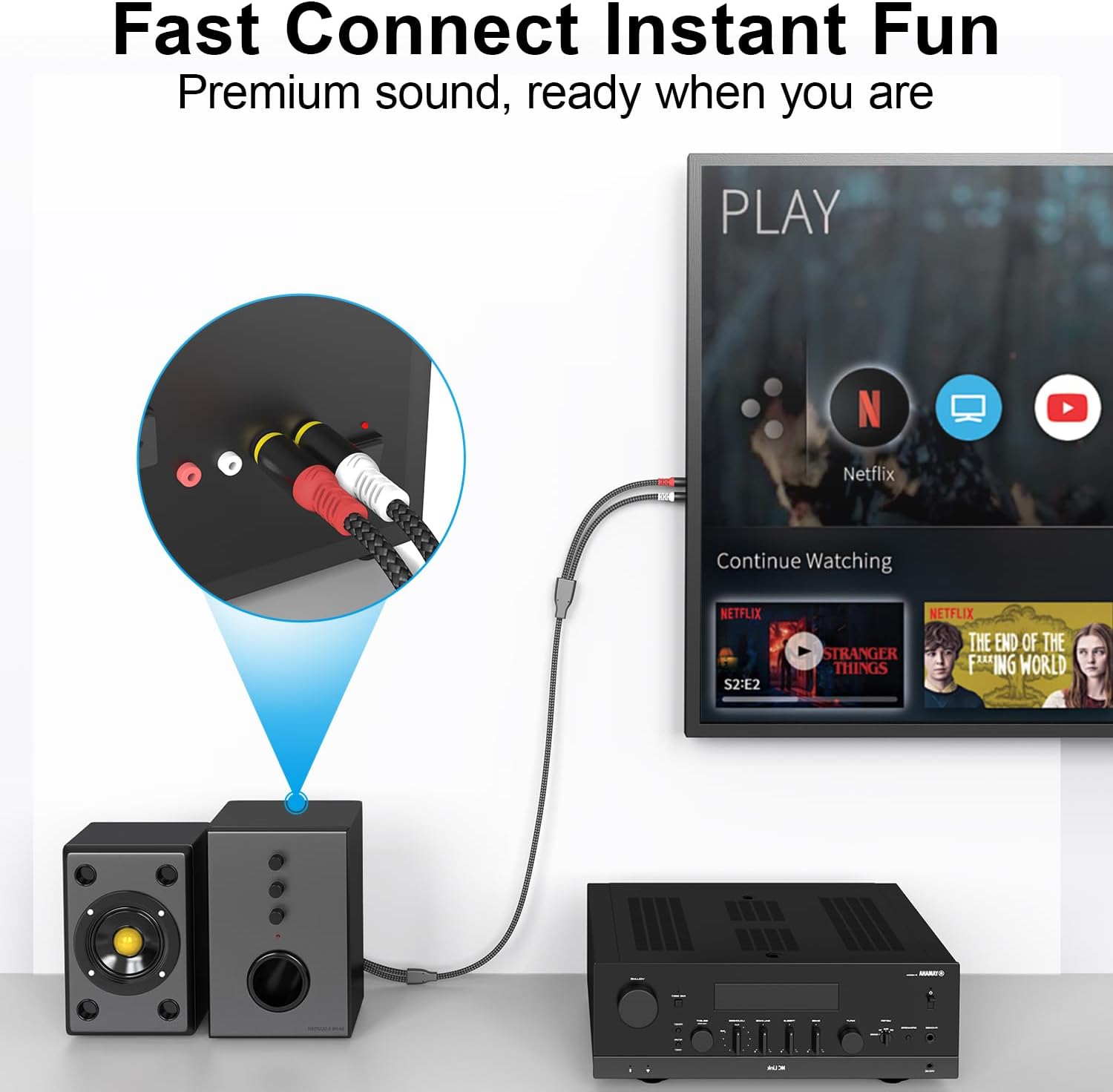 - PROFESSIONAL-GRADE AUDIO CLARITY: HOSONGIN rca cable use dual-shielding(aluminum foil + fully wrapped tinned copper wire) eliminates 99% RF/EM interference, delivering studio-level sound for movies, gaming, and vinyl records, crystal-clear highs, punchy bass.