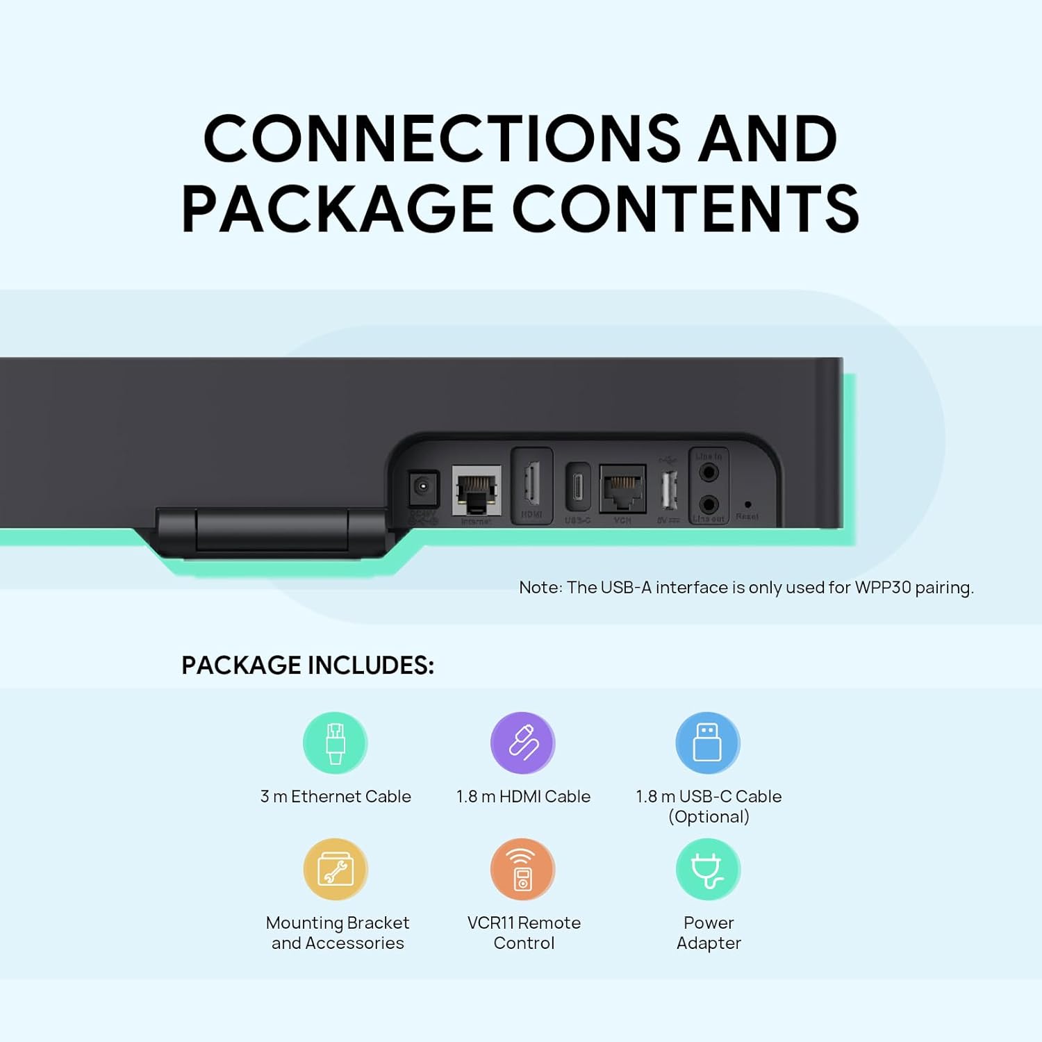 - All-in-One | Smart Video Collaboration➤ Integrating computing unit, camera, microphones, speaker, Bluetooth, Wi-Fi and bracket, A10 takes up less space and minimizing cable clutter. Plugging in power and HDMI cable gets a video conference ready. Based on Android 11.0 OS, A10 owns native Teams or Zoom experience that all features can be operated by just one touch or by the remote controller. ● Content Sharing ● Whiteboard