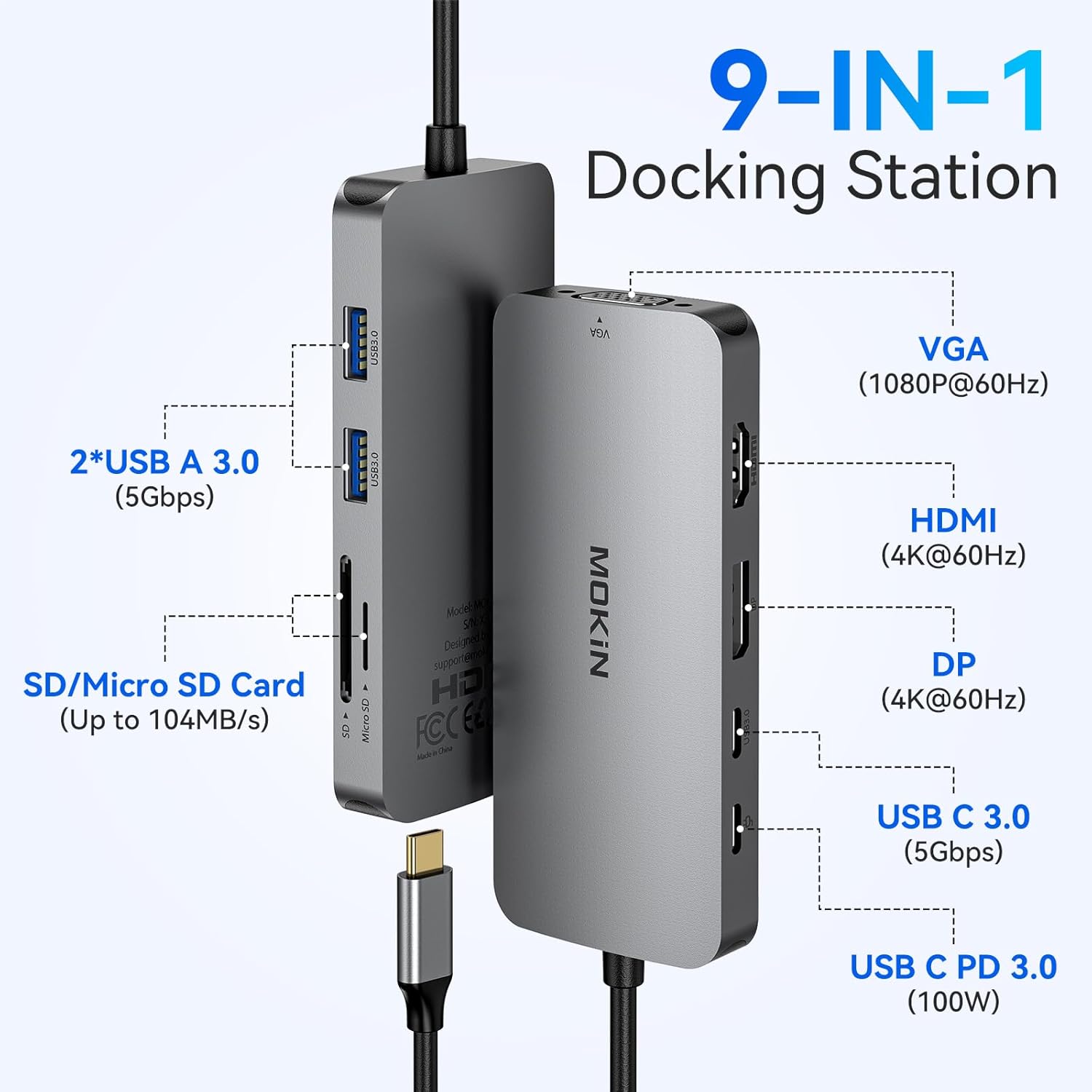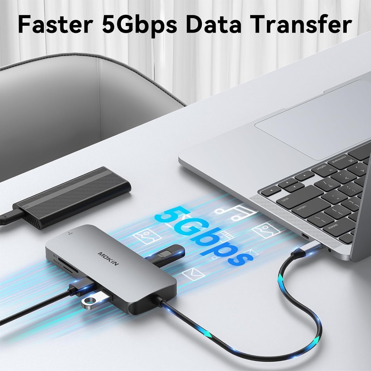 MOKiN USB C Multiport Adapter for MacBook Air/Pro, Mac Dongle, 9 in 1 USB C to DP Adapter, USB A&C3.0 5Gbps, SD/TF Card Reader, 100W PD, USB C Hub for Dell, Lenovo, HP, etc.