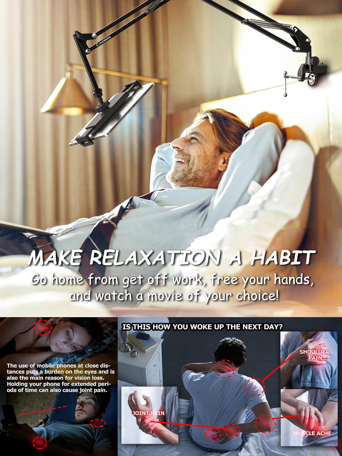 - high quality and Stable : The package is equipped with 4 power cord clips, which can realize the use of the bracket while charging,The tablet holder arm mount joints are lengthened and thickened, which provides stronger and more stable support. 4 joints to adjust and all angle. Just clamp it on and let the iPad holder for desk do all the work,If you have any questions, please feel free to contact us by email