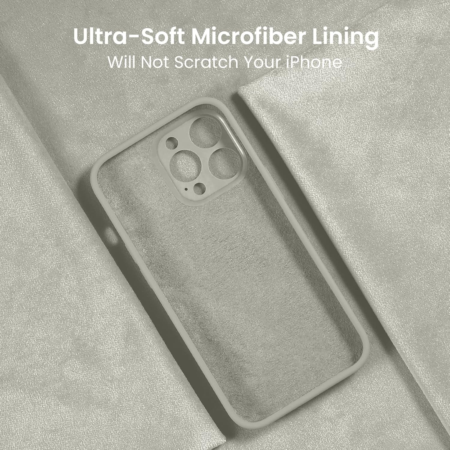 FireNova for iPhone 14 Pro Case, Silicone Upgraded [Camera Protection] Phone Case with [2 Screen Protectors], Soft Anti-Scratch Microfiber Lining Inside, 6.1 inch, Stone