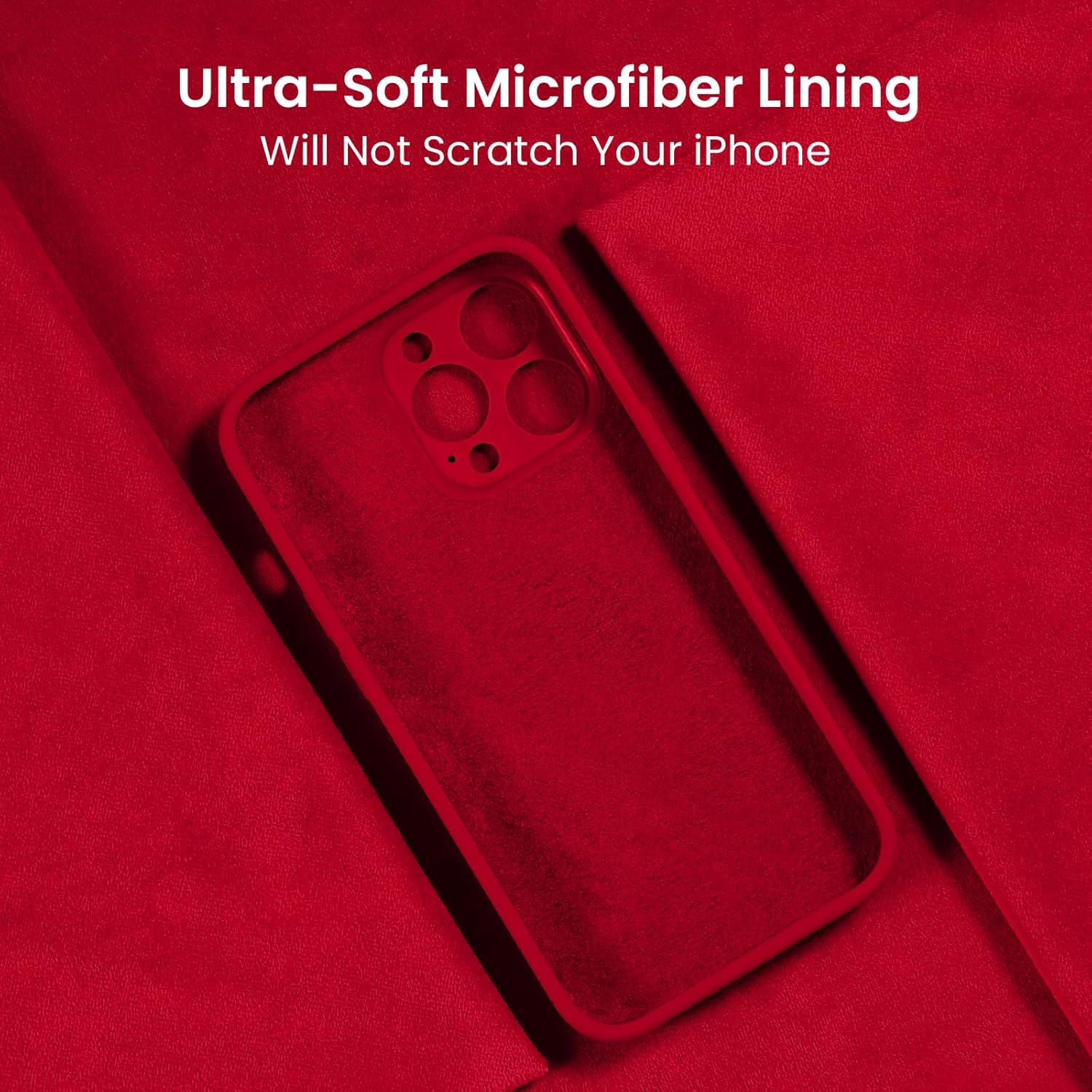 FireNova Designed for iPhone 13 Pro Max Case, Silicone [Camera Protection] Phone Case with [2 Screen Protectors], Soft Anti-Scratch Microfiber Lining Inside, 6.7 inch, Deep Red