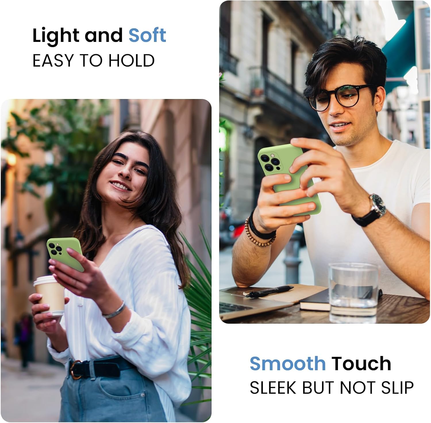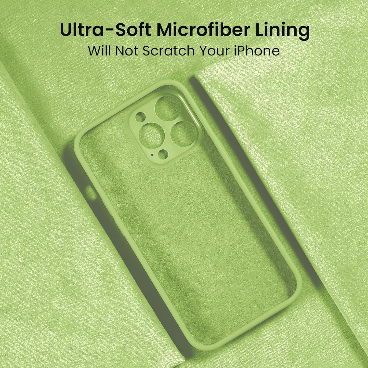 FireNova for iPhone 14 Pro Case, Silicone Upgraded [Camera Protection] Phone Case with [2 Screen Protectors], Soft Anti-Scratch Microfiber Lining Inside, 6.1 inch, Tea Green