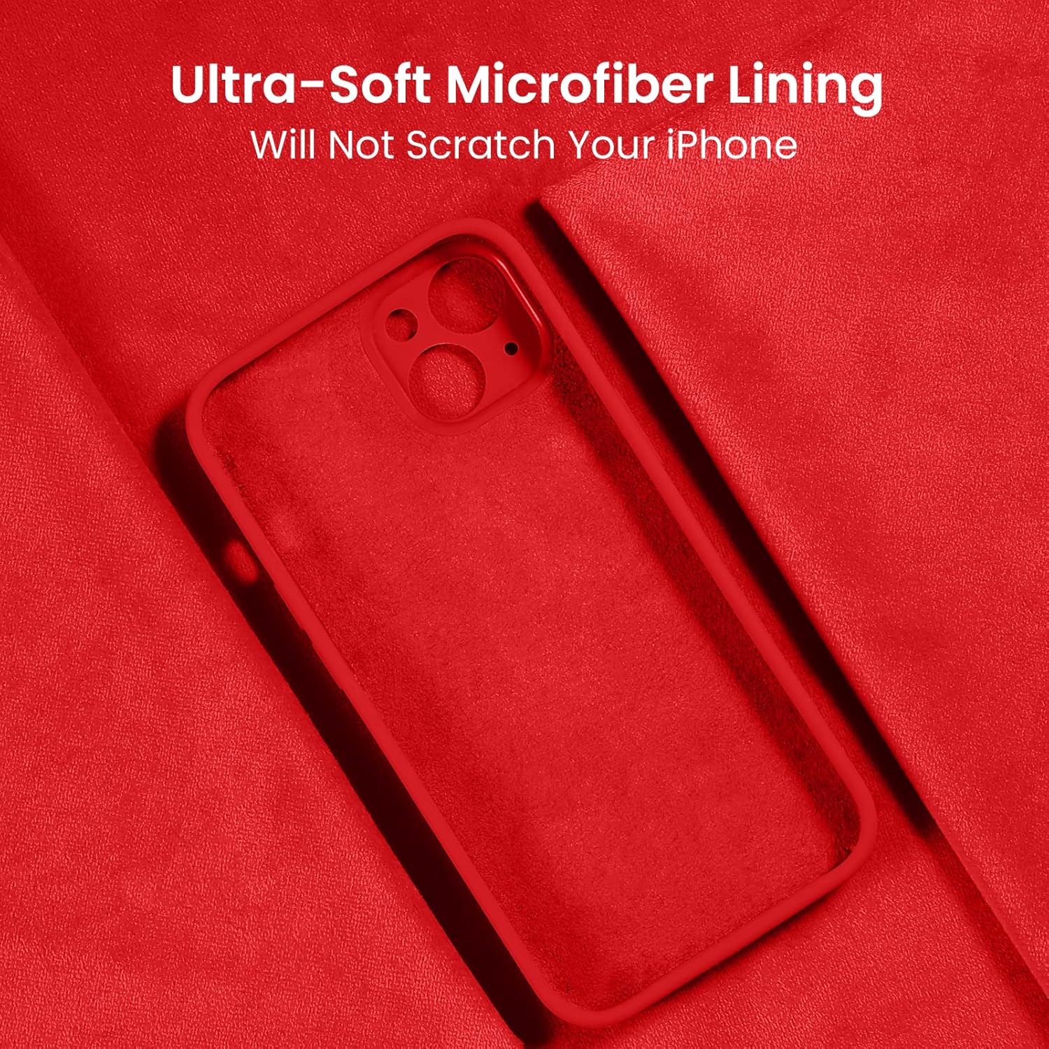 FireNova Designed for iPhone 14 Case, Silicone Upgraded [Camera Protection] Phone Case with [2 Screen Protectors], Soft Anti-Scratch Microfiber Lining Inside, 6.1 inch, Red