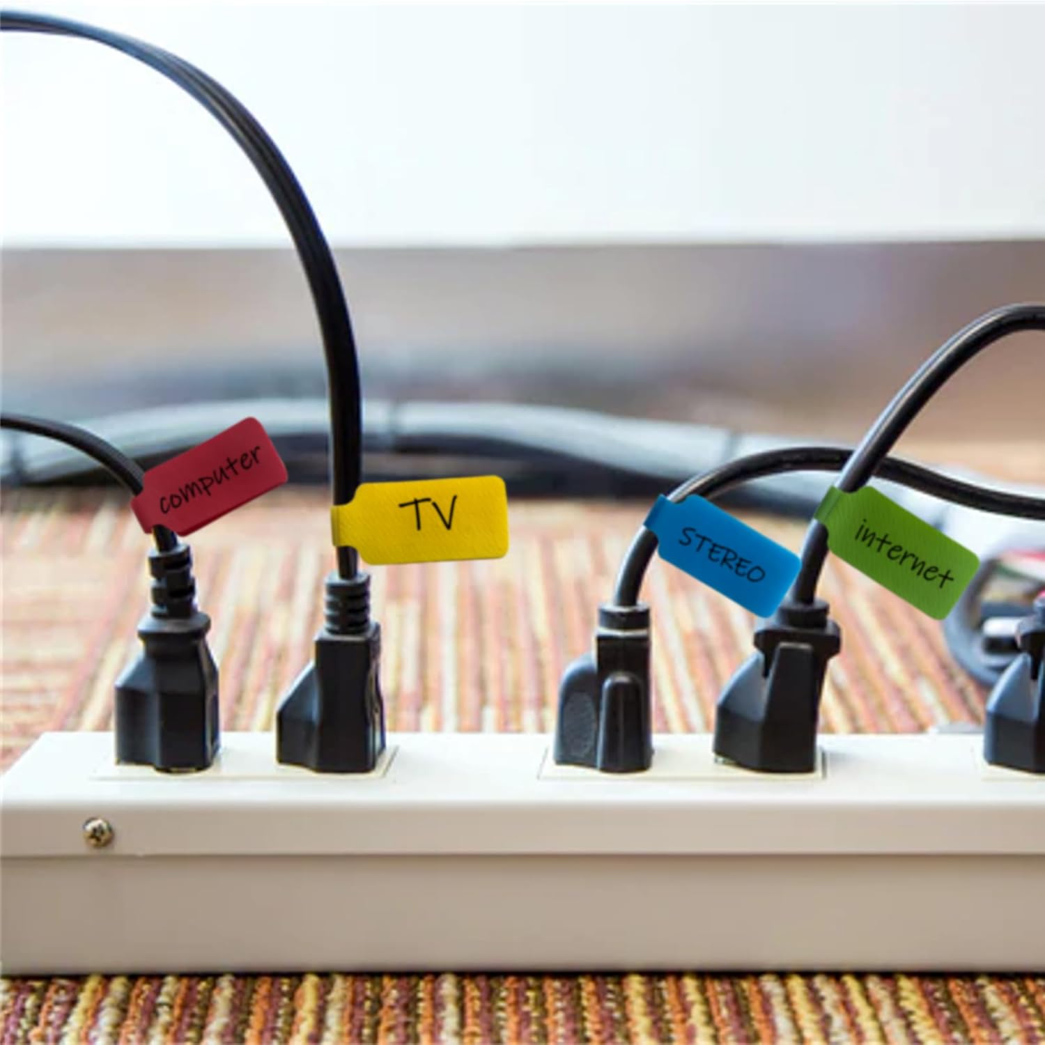 - MAKES ID A SNAP - Everybody has a bunch of electronic cables they can't identify, whether they're plugged into stuff or gathering dust at the bottom of a drawer... You may get really sick of it taking half an hour to figure out what was what every time. Use these to label all your cords at the power strip, from larger HDMI to the much slender iPhone charger so you know what you're unplugging under your desk or behind your furniture. NEVER unplug the wrong thing!
