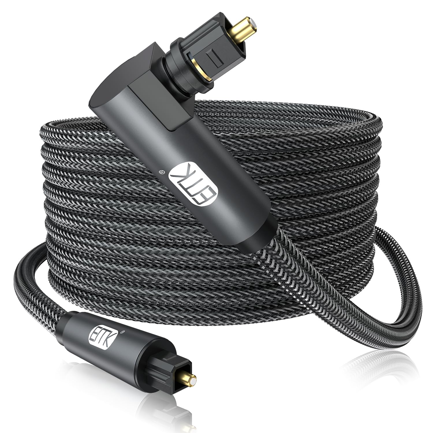 EMK 90 Degree Toslink Optical Cable 360 Degree Free-Rotating Plug Fiber Optic Cable S/PDIF Toslink Male to Male for Home Theater, Sound Bar, TV, PS4, Xbox,Grey (30ft/10m)