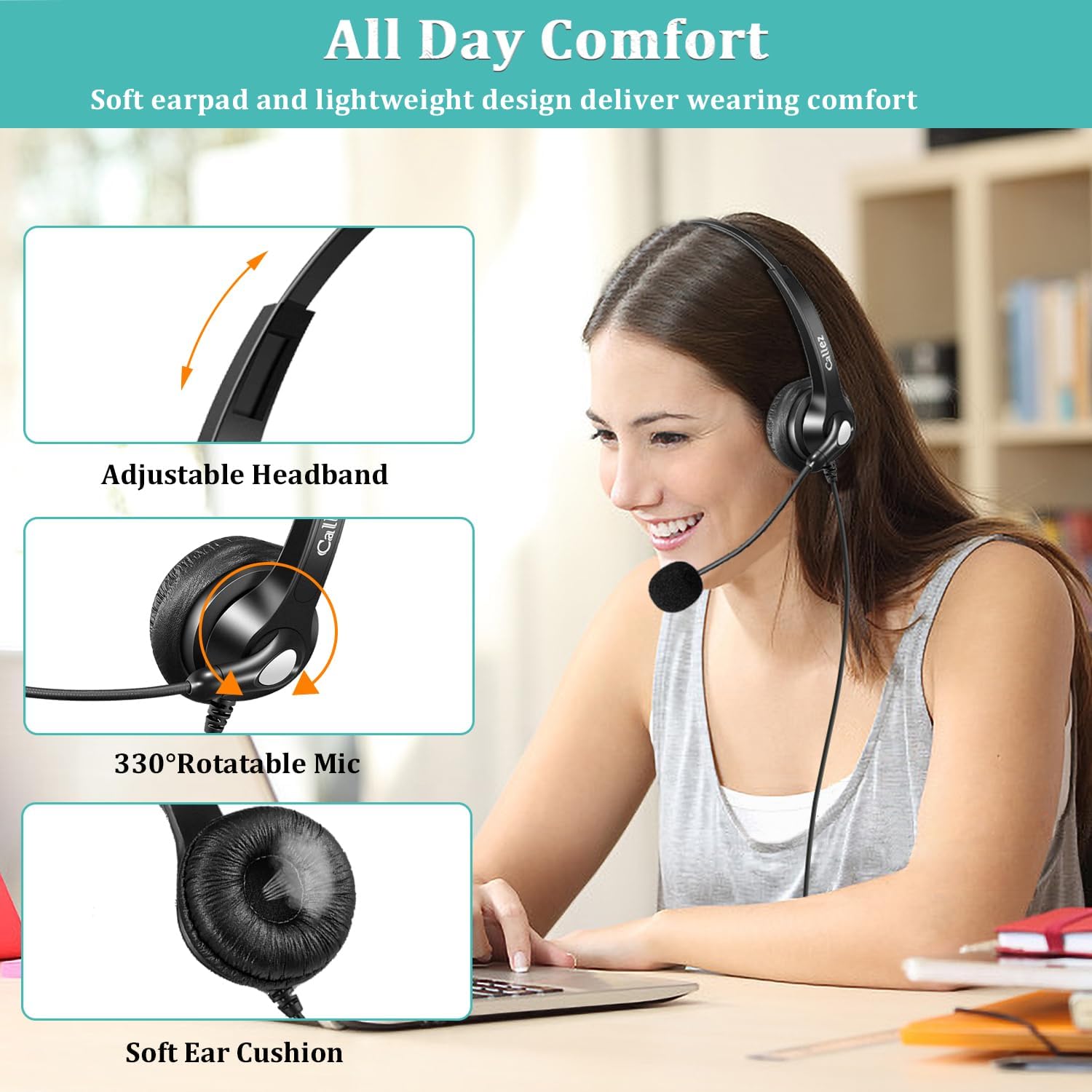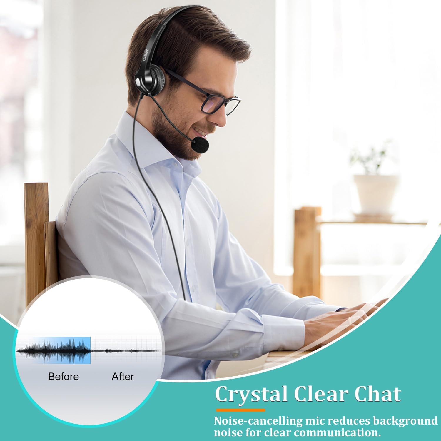 Callez 3.5mm Headset with Microphone Noise Cancelling for Cell Phone PC Laptop, Stereo Computer Headphones for iPhone Samsung Mac Call Center Office Skype, in-line Control, Clear Chat