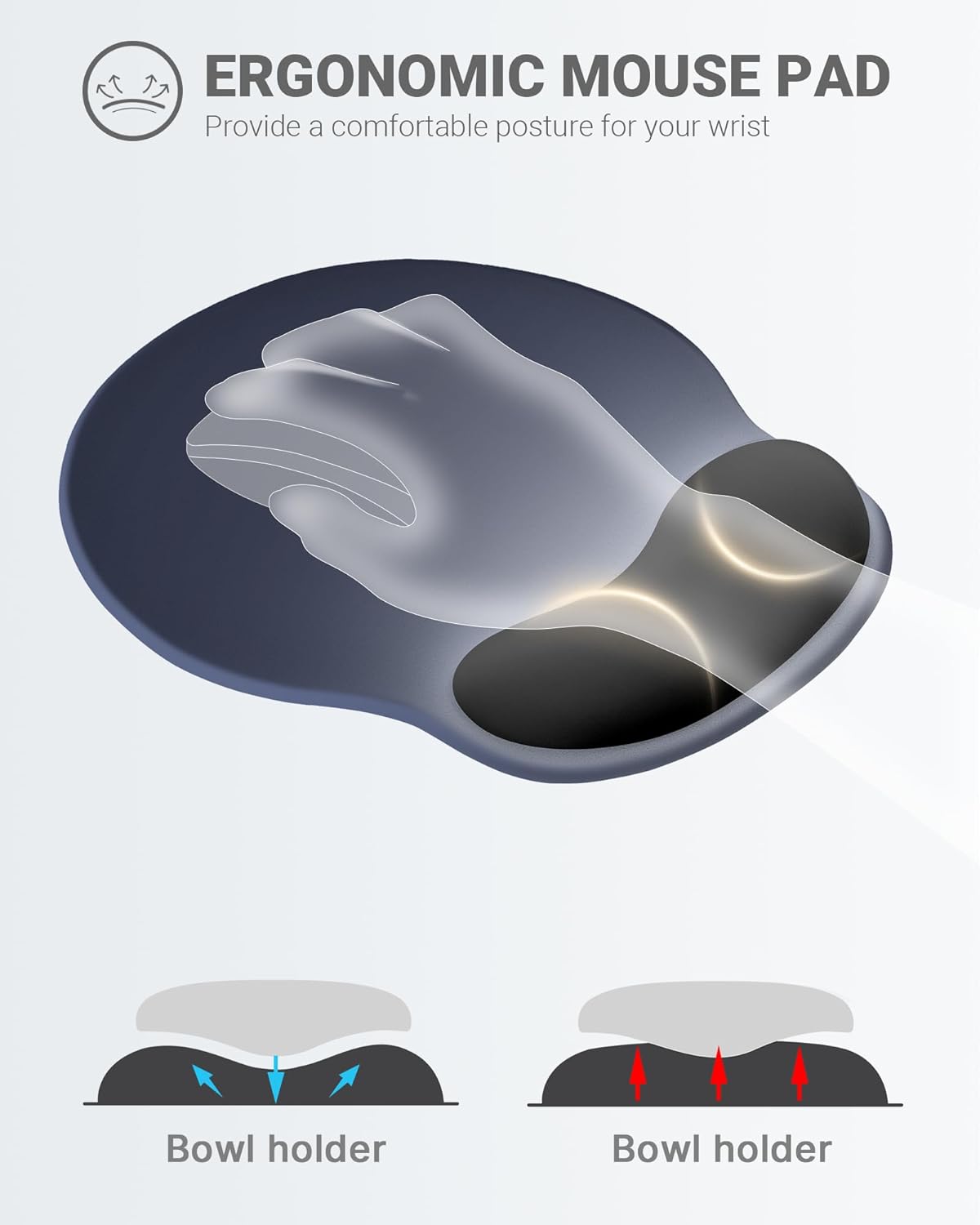 - 【Large Mouse Pad Size】Large mousepad with optimal shape and bigger size (10.6" x 9" x 1.18"). You can move the mouse around more easily and freely. Good for working, gaming, or as gifts to your friends or family. (Note: Please make sure the desk has enough space for mouse pad with wrist rest.)