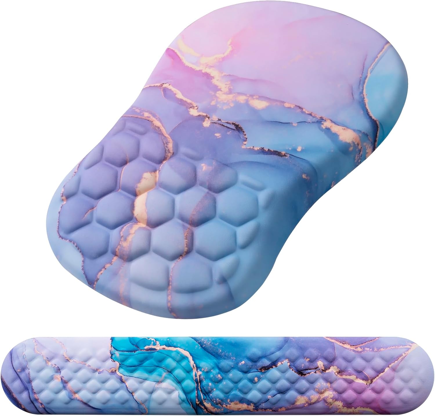 - 【mouse pad wrist support】The surface of our keyboard and mouse pad is made of silky lycra fabric, offering a smooth and skin-friendly experience. Enjoy precise mouse control and easy cleaning with the ability to wash away liquid stains. The high-definition bright print pattern adds a touch of elegance to your workspace.
