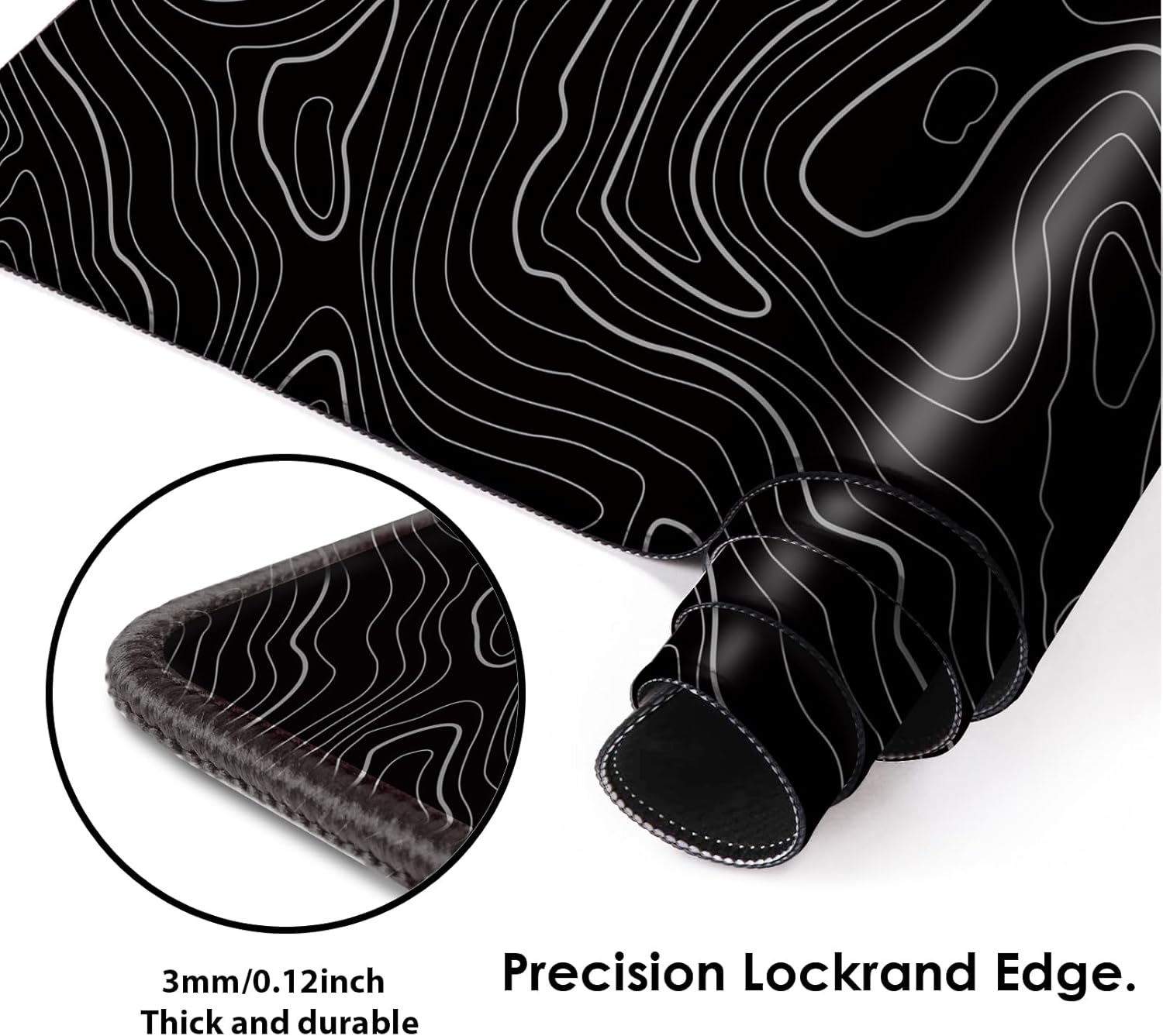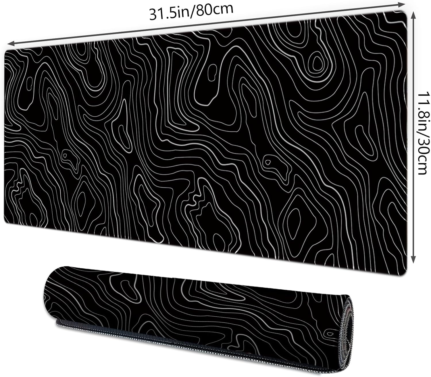 Gaming Mouse Mat Forest Background Pattern XXL XL Large Mouse Mat Long Extended Mouse Pad Desk Mat Non-Slip Rubber Mice Pads Stitched Edges Thin Pad (Topographic Map Balck)