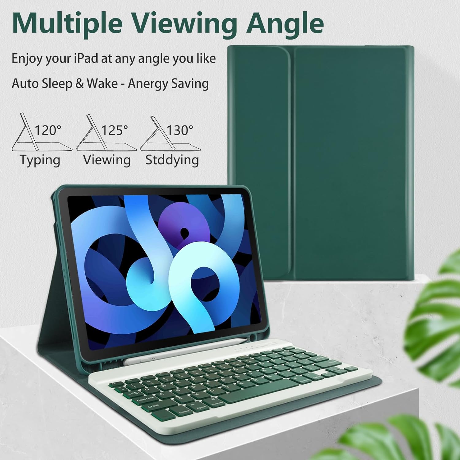 - Multiple Viewing Angles: Made with a premium synthetic leather exterior, a secure magnetic closure & a durable interior plastic case that firmly holds a 10.9 or 11 inch. For iPad Air Keyboard Case specially designed 3 indents to support the tablet into three different viewing angles, easily adjust to the most comfortable angle for you, providing you with amazing versatility. Perfect for working, writing or watching videos at office, school and home