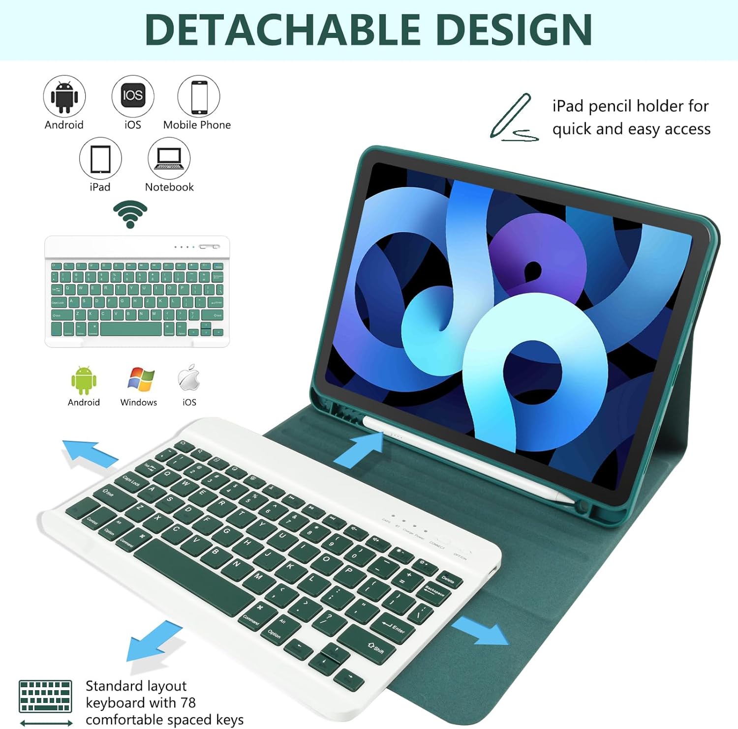 - Magic Keyboard for iPad Air 5th Generation: For iPad Air 5th Keyboard Case comes with Detachable Wireless Bluetooth magnetic keyboard can transform your tablet into a convenient little notebook laptop easily. A laptop-like keyboard with a full row of iPadOS shortcuts are ergonomic and comfortable. The keyboard is separated from the case, when you don’ t need to use the keyboard, you can remove it and make it come back for iPad air 5/air 4/Pro 11