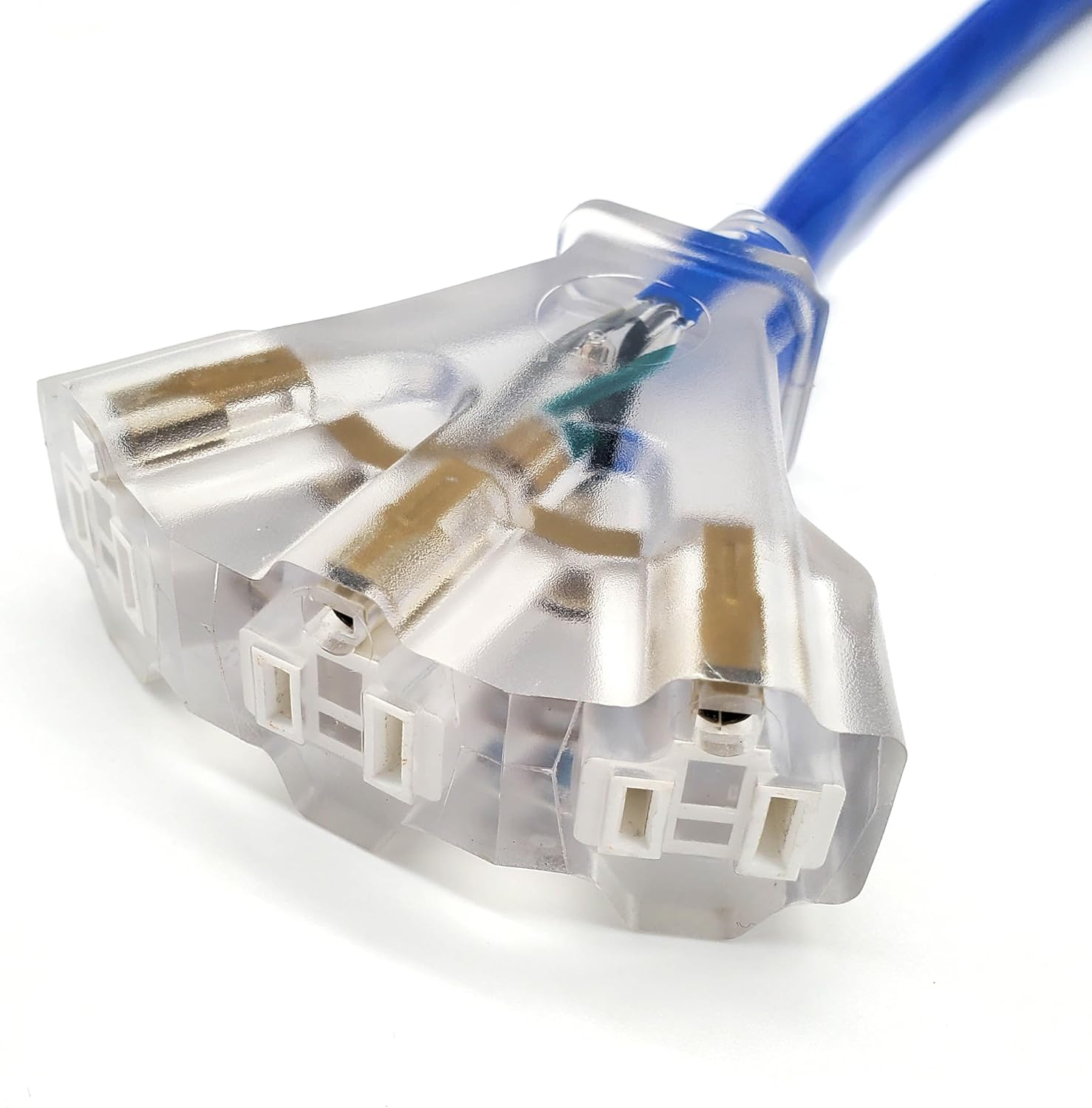 - Multiple Outlets: This heavy duty extension cord with multiple outlets works great as an extension cord splitter, allowing you to power three devices simultaneously.