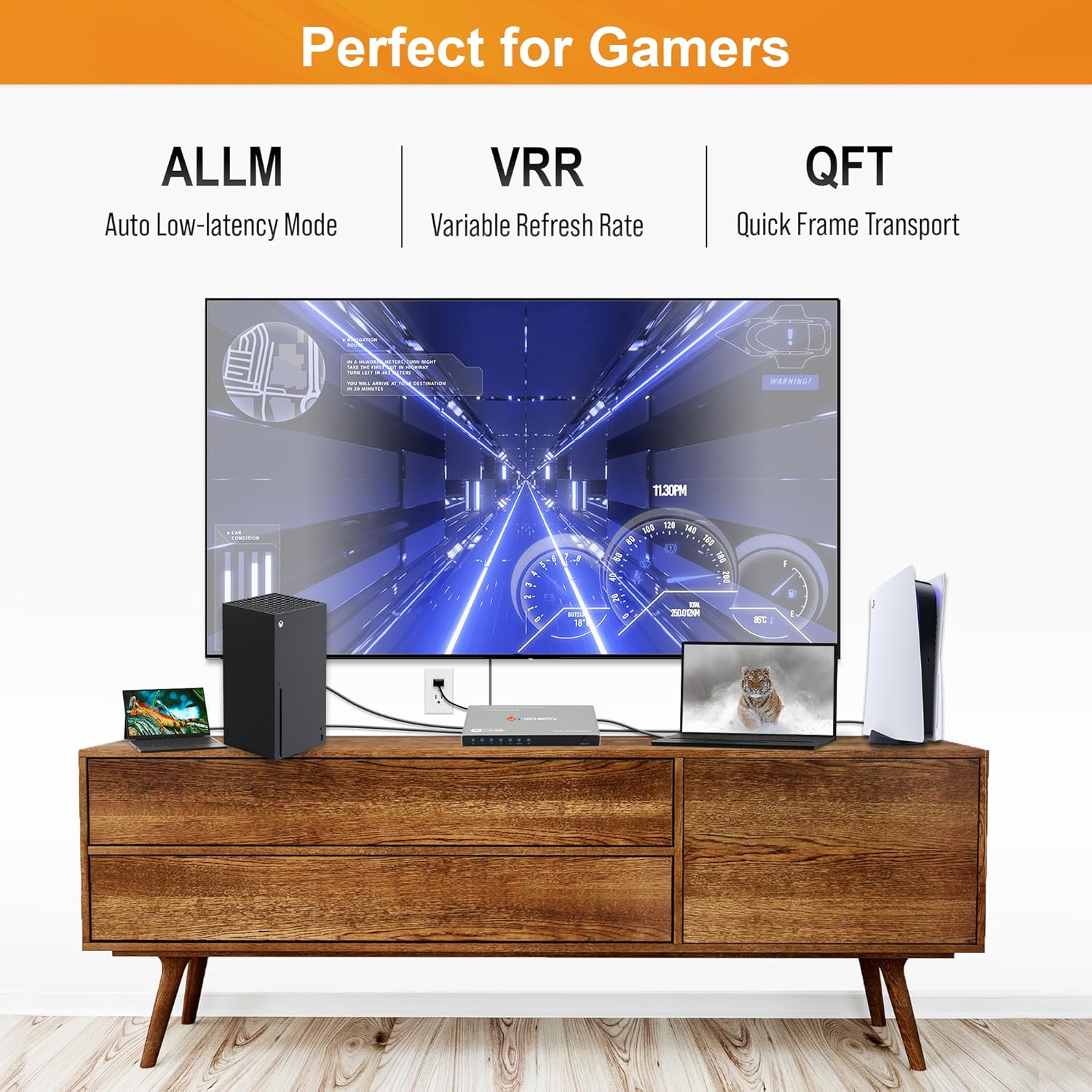 - ๐-๐๐ง๐ฉ๐ฎ๐ญ๐ฌ ๐-๐๐ฎ๐ญ๐ฉ๐ฎ๐ญ ๐ฐ/ ๐๐ฎ๐ญ๐จ & ๐๐๐ง๐ฎ๐๐ฅ ๐๐ฐ๐ข๐ญ๐๐ก๐ข๐ง๐ โ Connect and switch between 4 input source devices with ease. Perfect for new displays with one HDMI 2.1 input port. Manually switch between your sources devices or take advantage of the auto-switching feature.