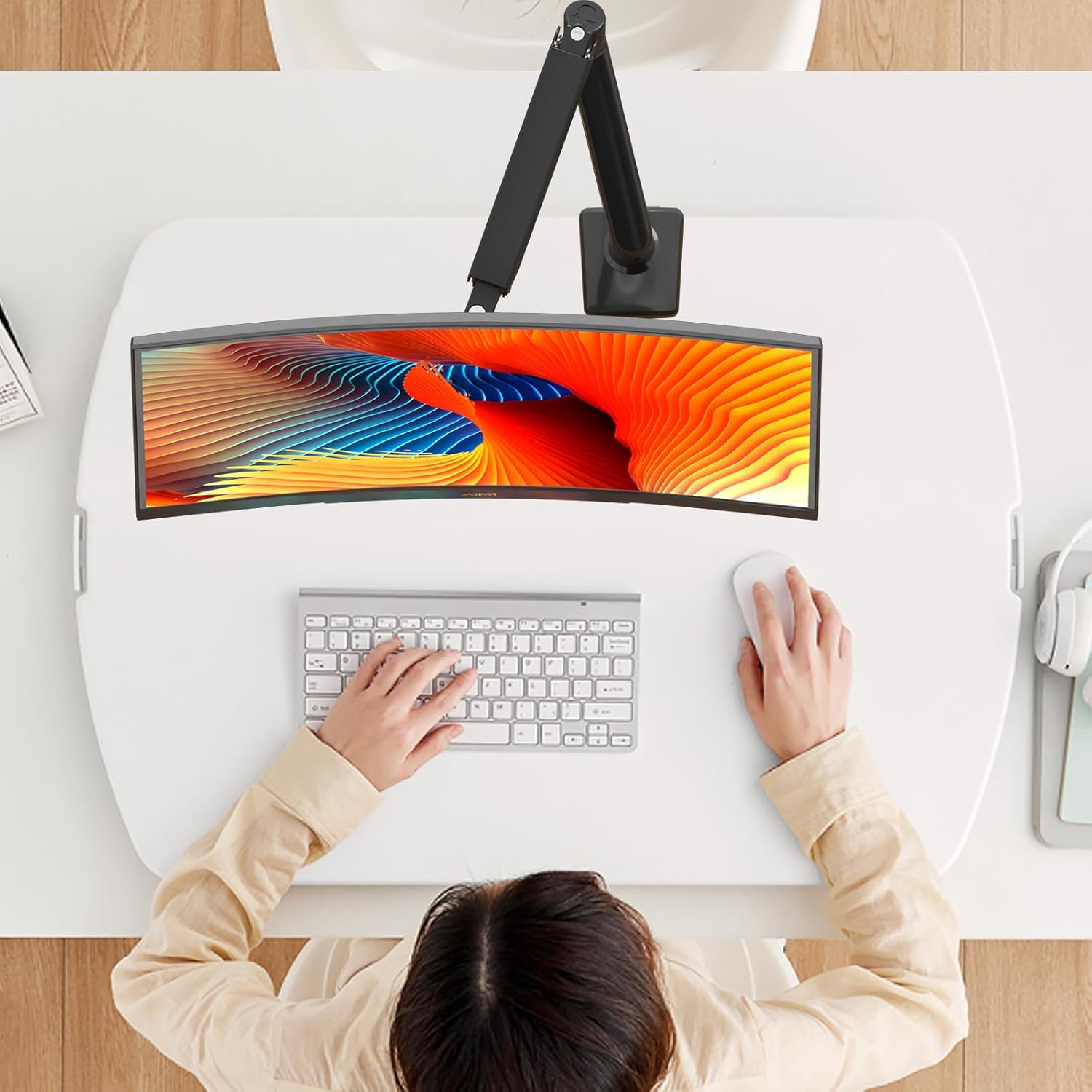 - All directional motion adjustment - The adjustable display bracket arm can provide+90 ° to -45 ° tilt, 180 ° rotation, and 360 ° rotation. This monitor arm can extend up to 19.4 inches, providing you with a more ideal viewing angle and helping to alleviate pain in the shoulders, neck, and back.