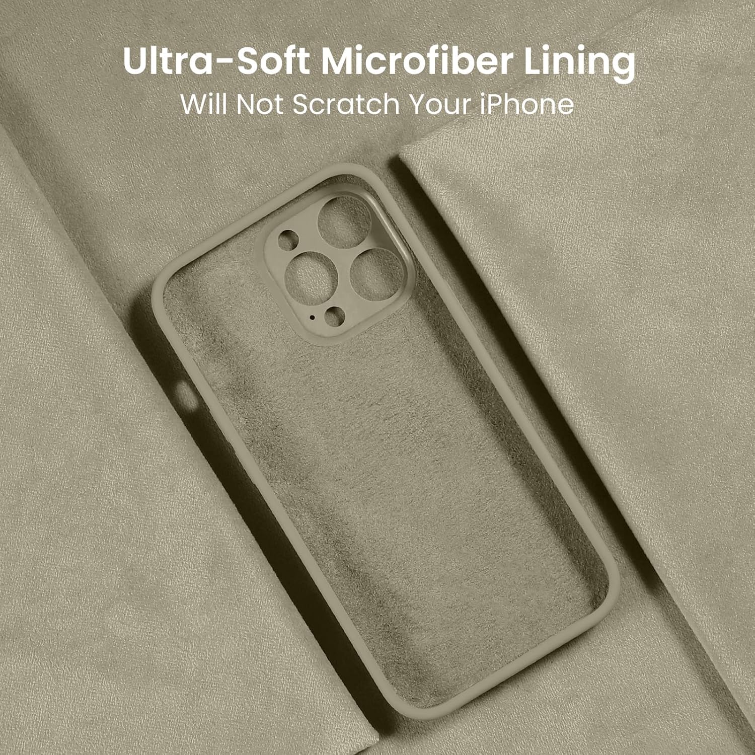 FireNova Designed for iPhone 13 Pro Max Case, Silicone [Camera Protection] Phone Case with [2 Screen Protectors], Soft Anti-Scratch Microfiber Lining Inside, 6.7 inch, Khaki