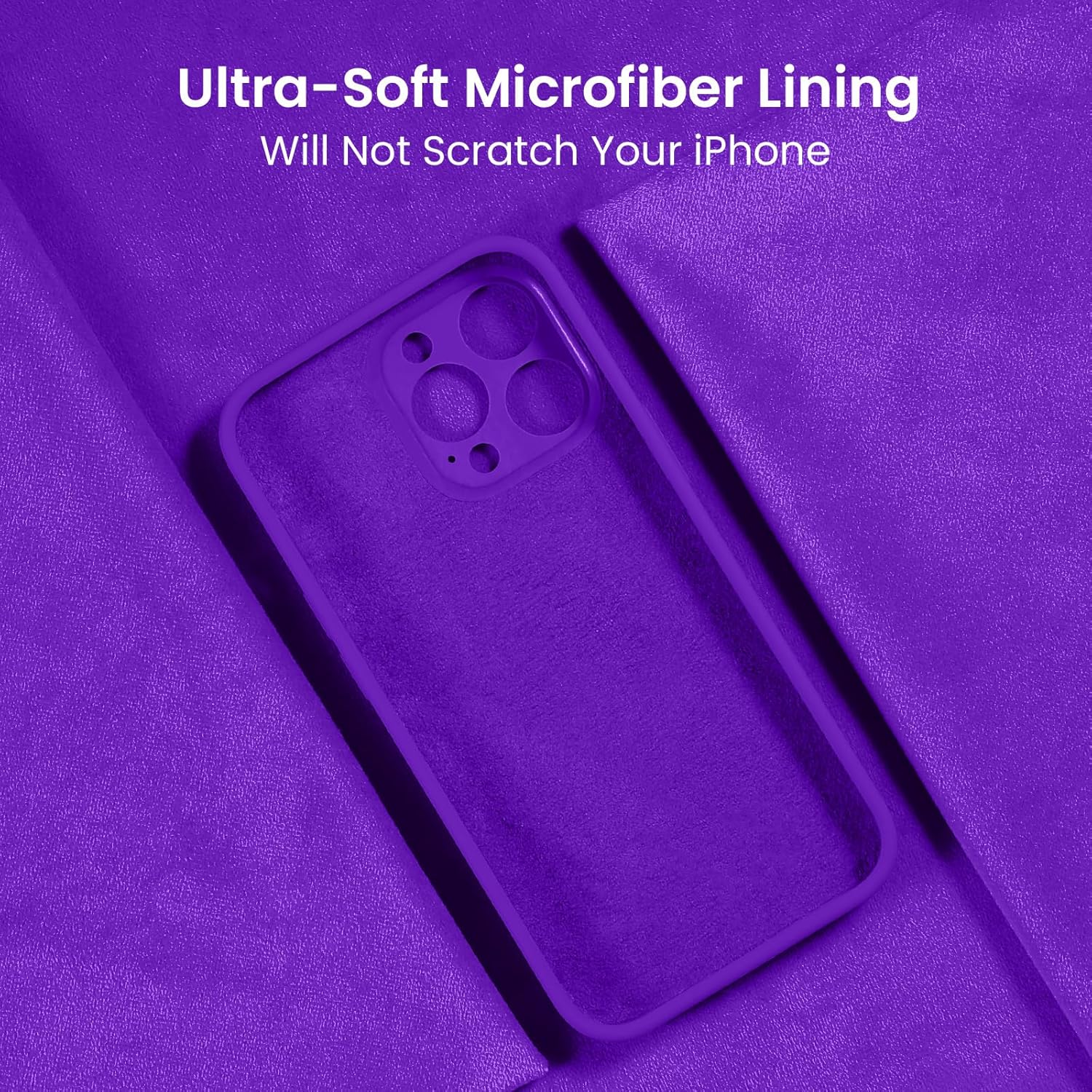 FireNova Designed for iPhone 15 Pro Case, Silicone Upgraded [Camera Protection] Phone Case with [2 Screen Protectors], Soft Anti-Scratch Microfiber Lining Inside, 6.1 inch, Neon Purple
