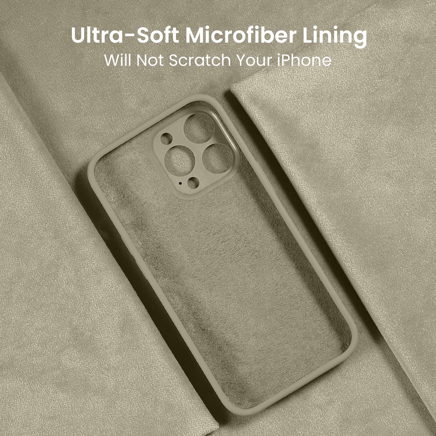 FireNova Designed for iPhone 15 Pro Max Case, Silicone Upgraded [Camera Protection] Phone Case with [2 Screen Protectors], Soft Anti-Scratch Microfiber Lining Inside, 6.7 inch, Khaki