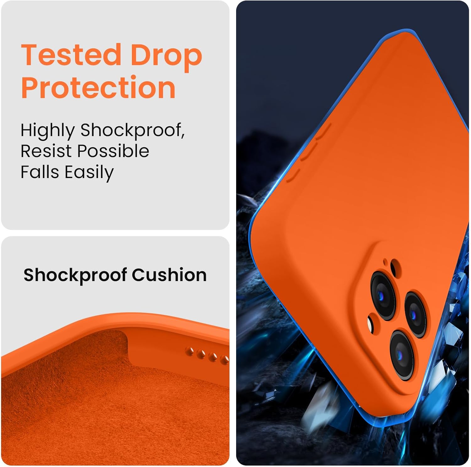 FireNova Designed for iPhone 15 Pro Max Case, Silicone Upgraded [Camera Protection] Phone Case with [2 Screen Protectors], Soft Anti-Scratch Microfiber Lining Inside, 6.7 inch, Neon Orange