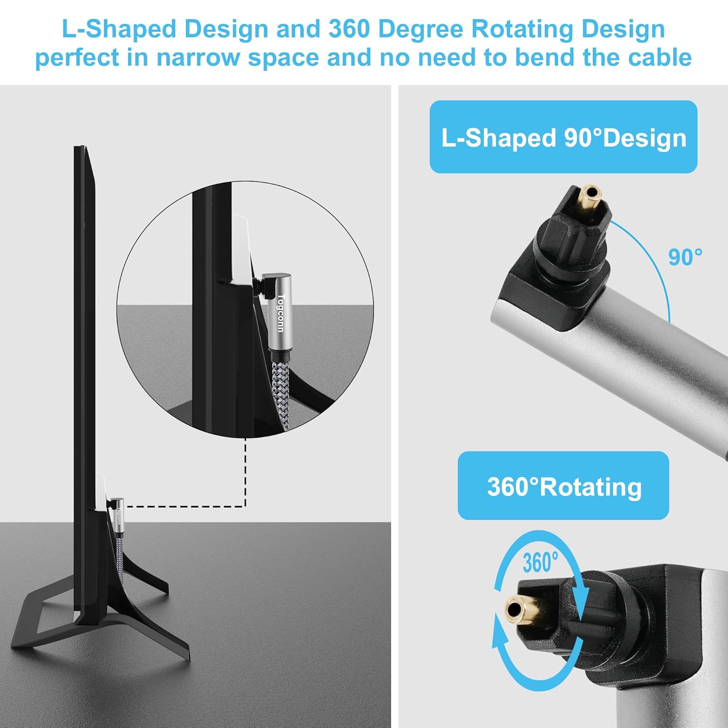 - 90 Degree Right Angle & Straight Design : Straight extension cords are used for regular cable connections. It also includes a right angle Toslink audio cable to change the direction of the interface, reduce the stress on the Toslink port, and is very suitable for wall mounted devices, solving the awkward problem of limited space between walls and devices. 90 degrees can rotate 360° and adjust any angle.