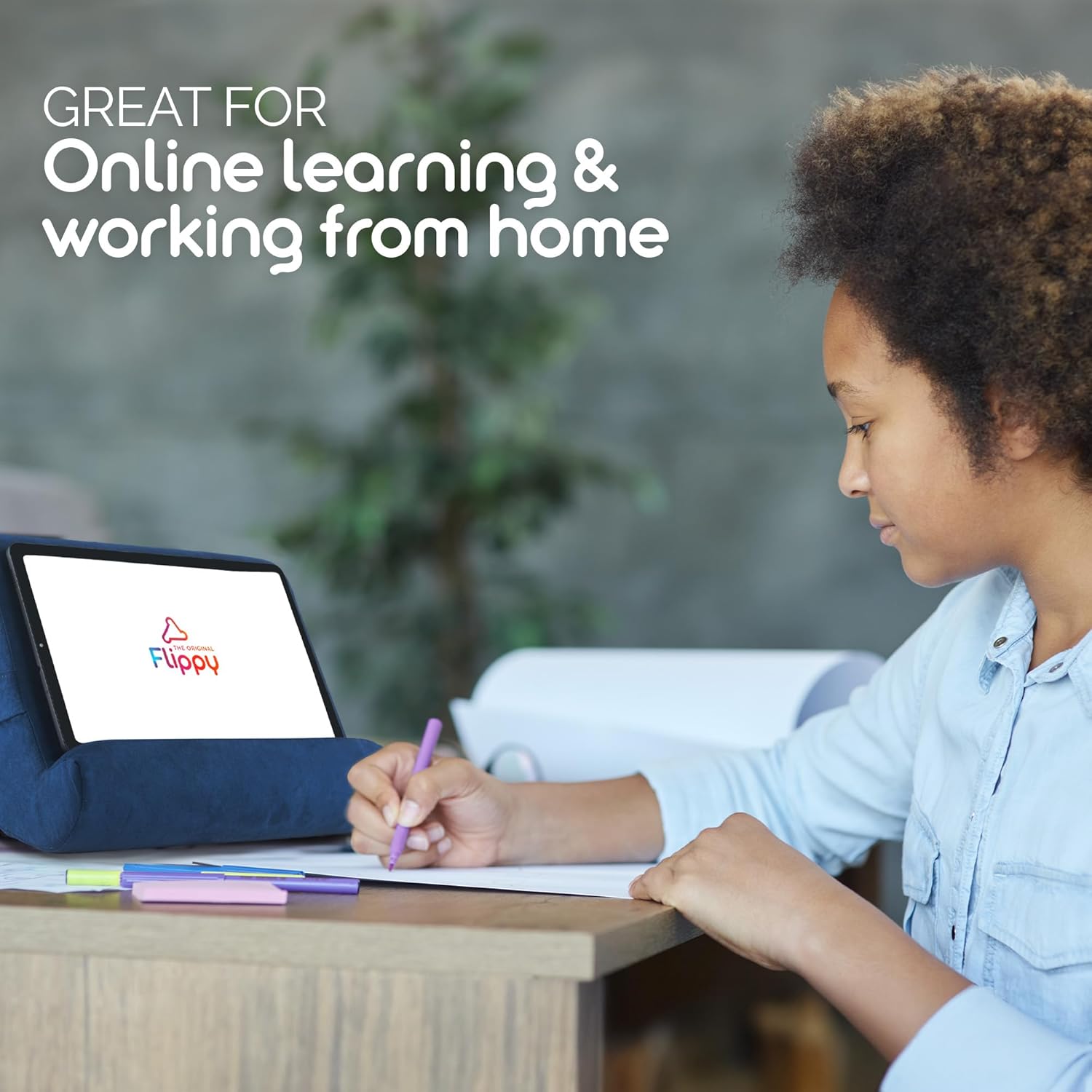 Flippy Tablet Pillow Stand - Cushion Tablet Stand & Holder, Bed Support for Lap and Desk, Compatible with Phone & Book Reading: Kindle, iPad Pro, iPhone & Samsung - True Blue