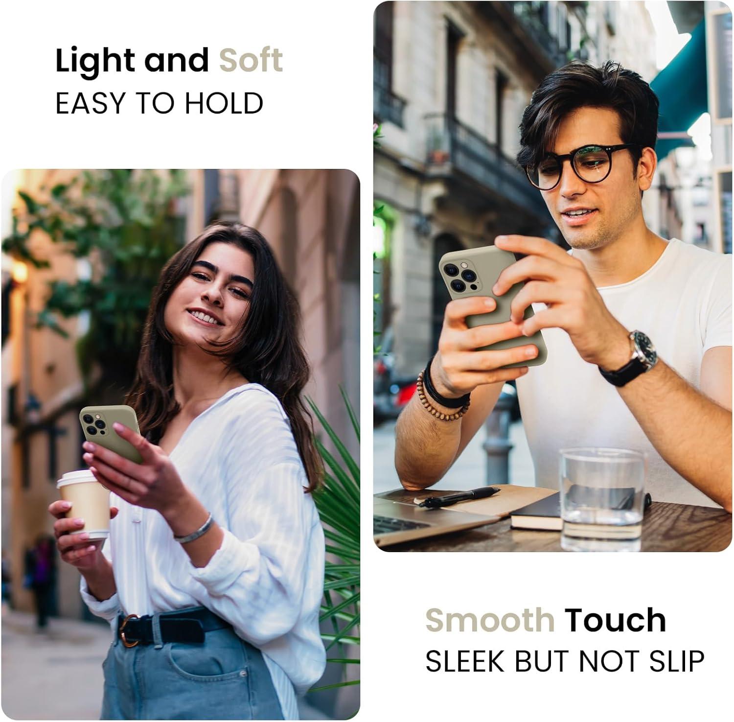 FireNova for iPhone 14 Pro Case, Silicone Upgraded [Camera Protection] Phone Case with [2 Screen Protectors], Soft Anti-Scratch Microfiber Lining Inside, 6.1 inch, Khaki