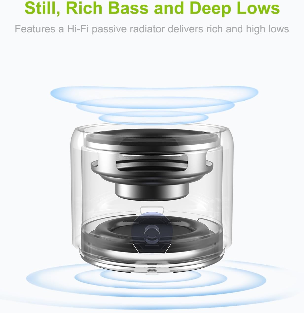 - JUST-RIGHT VOLUME AND BASS - A106Pro mini speaker is conveniently small but able to releasing crystal clear sound with bass and room-filling loudness through a high-performance driver and a passive subwoofer. Small, but such powerful Bluetooth speakers. Wireless streaming music or internet radio services such as Pandora and Spotify from your Smartphone, iPhone, or other audio device with Bluetooth.
