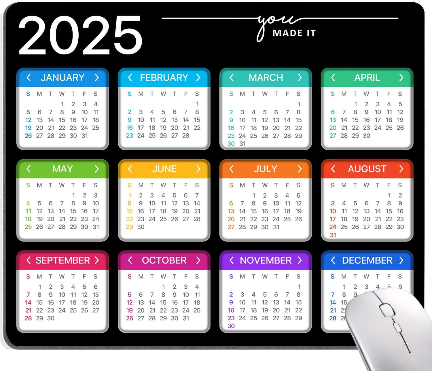 Hokafenle Mouse Pad, Black 2025 Calendar Mouse Pad, Premium-Textured Square Waterproof Mouse Mat Non-Slip Rubber Base MousePads for Office Laptop Home