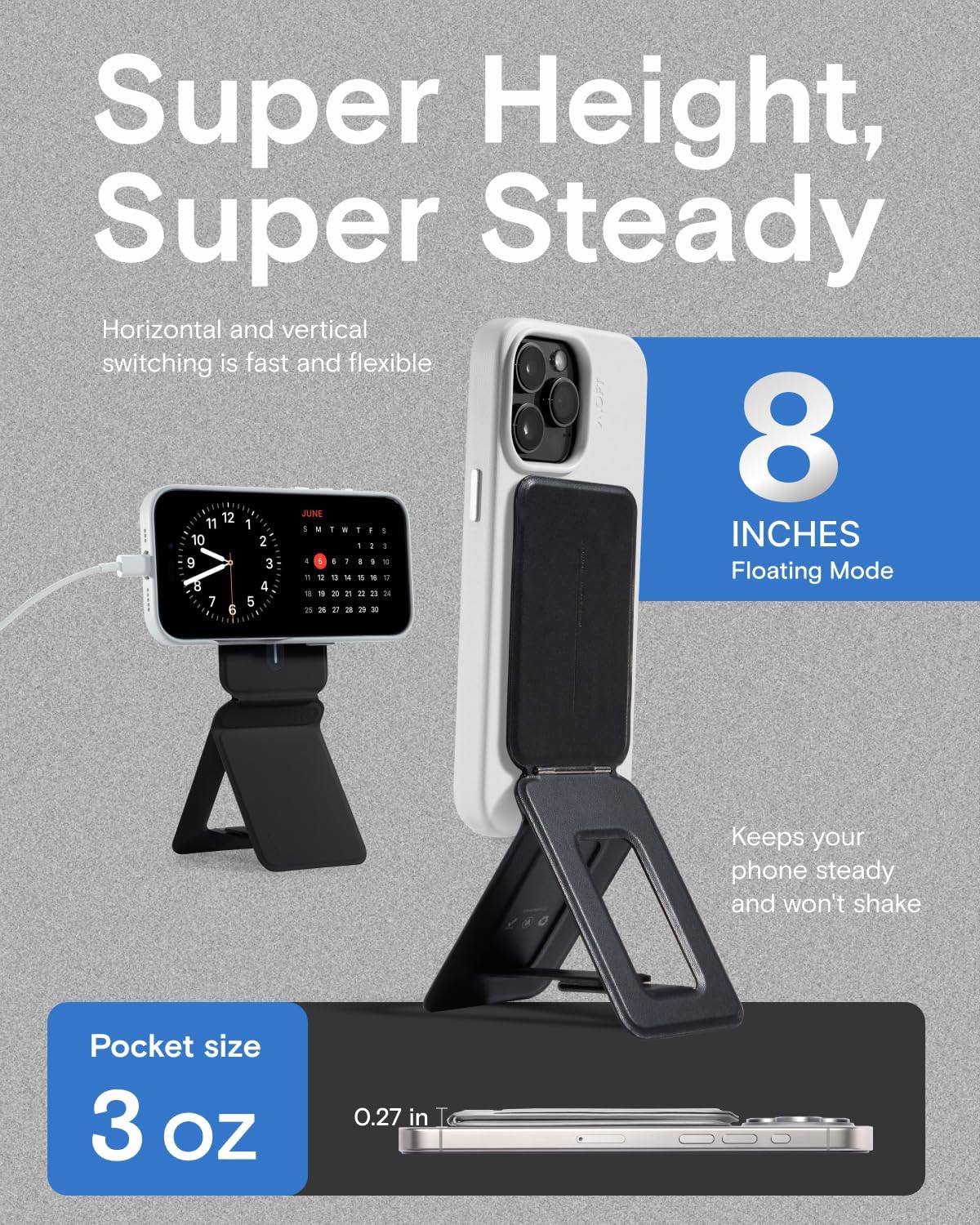 - Super high & Super steady: MOFT phone tripod’s triangular stabilizing structure keeps your phone steady and won’t shake when filming or recording. Plus, it extends to an impressive 8 inches (using iPhone 16 Plus as an example). Our phone stand perfect for taking or stabilizing group selfies, whether you’re capturing sunset views on vacation, recording tutorials or meetings at your desk, or taking photos of your family reunion, this phone tripod is convenient for you!
