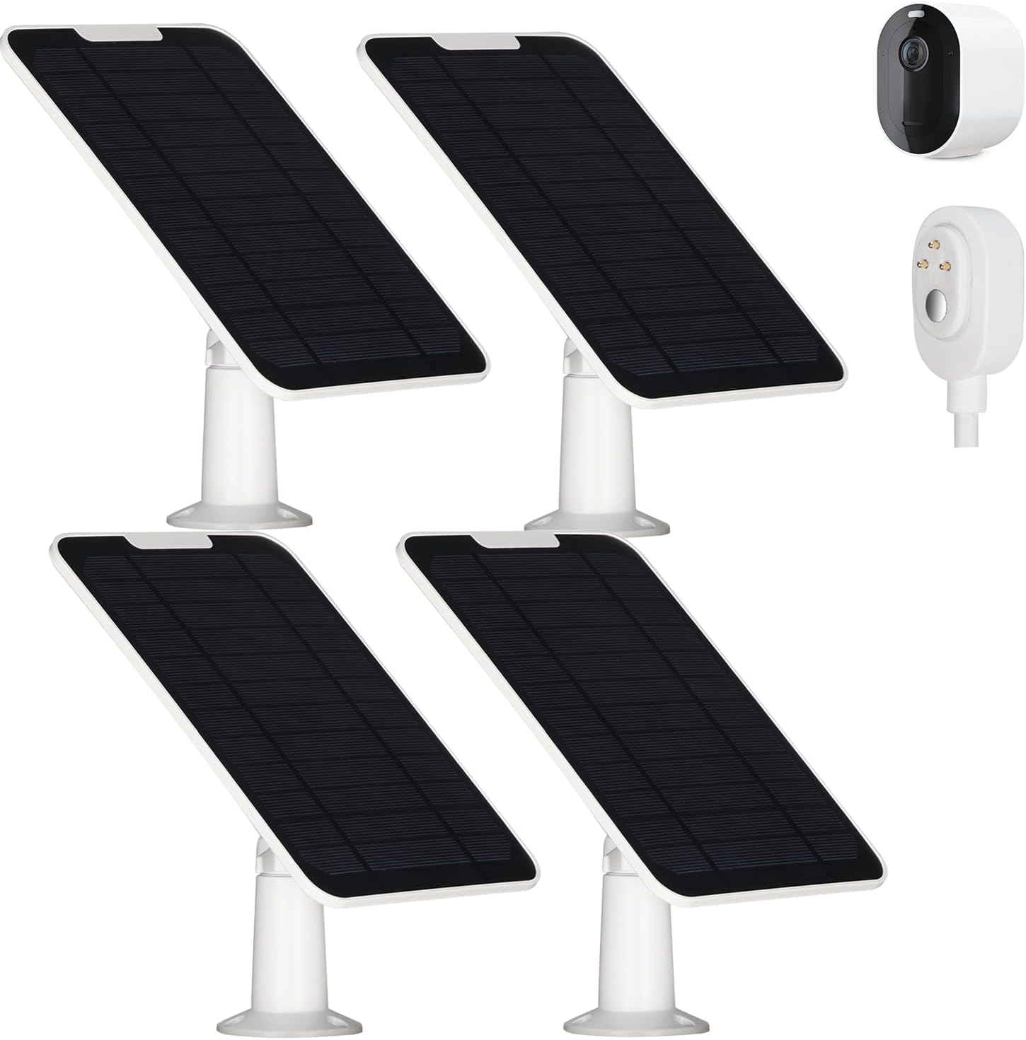 Solar Panel Charger Compatible with Arlo Pro 3/Pro 4/Pro 5S/Ultra/Ultra 2/Go 2 Continuous Power Supply IP65 Weatherproof with 9.8ft Charging Cable and Adjustable Wall Mount 4 Pack