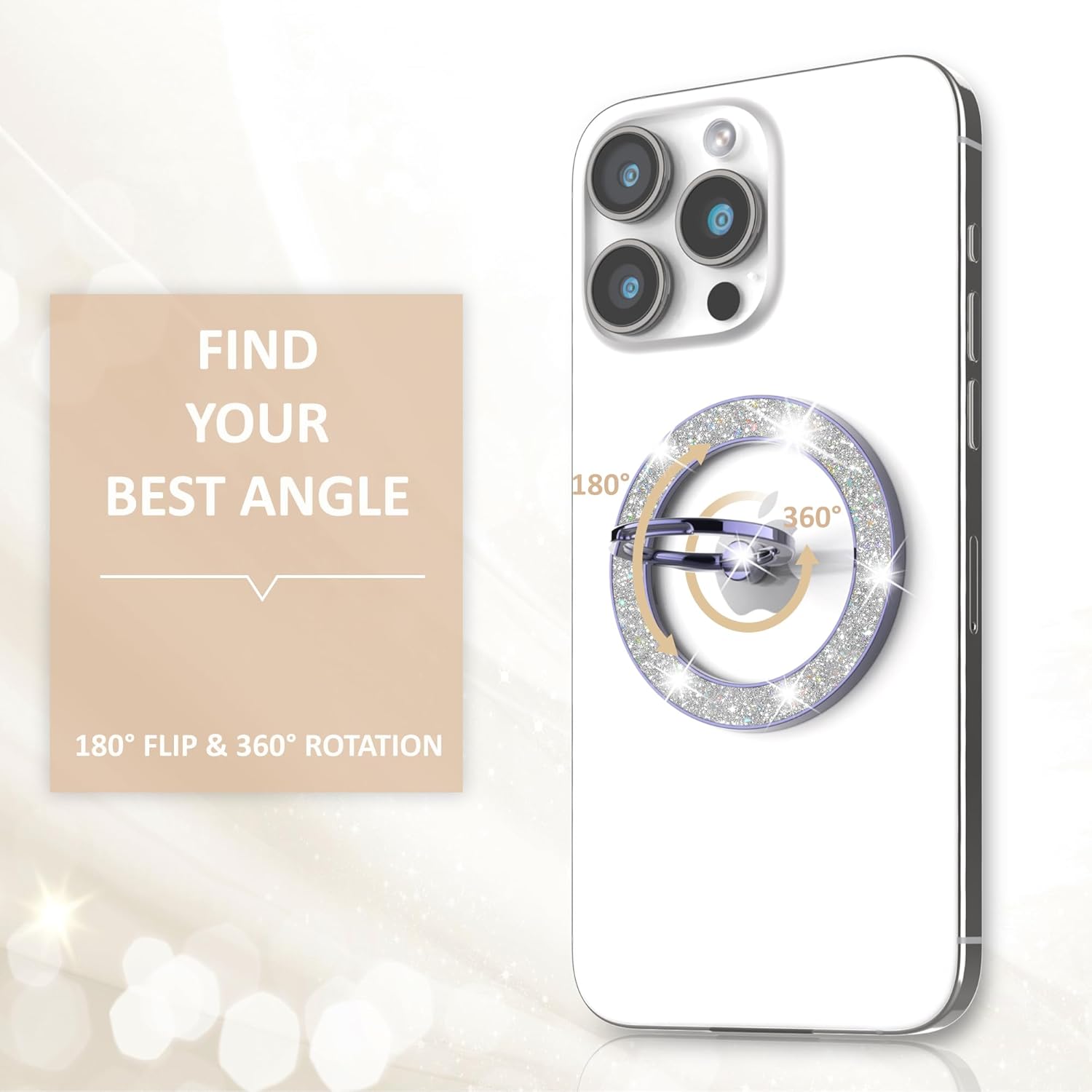 Magnetic Phone Ring Holder for MagSafe, Magnetic Phone Grip for iPhone, Compatible with iPhone MagSafe Wireless Charging. (Glitter Purple)