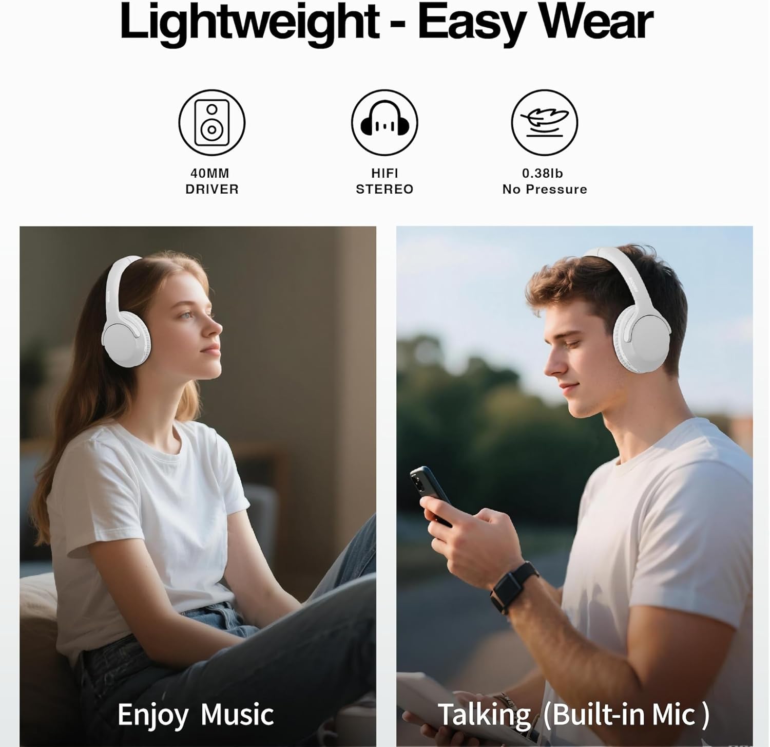 MIDOLA Bluetooth Headphones Over Ear 68H Playtime 6 EQ Wireless Headset with Microphone HiFi Stereo Foldable Lightweight Deep Bass for Travel Home Office Cellphone White