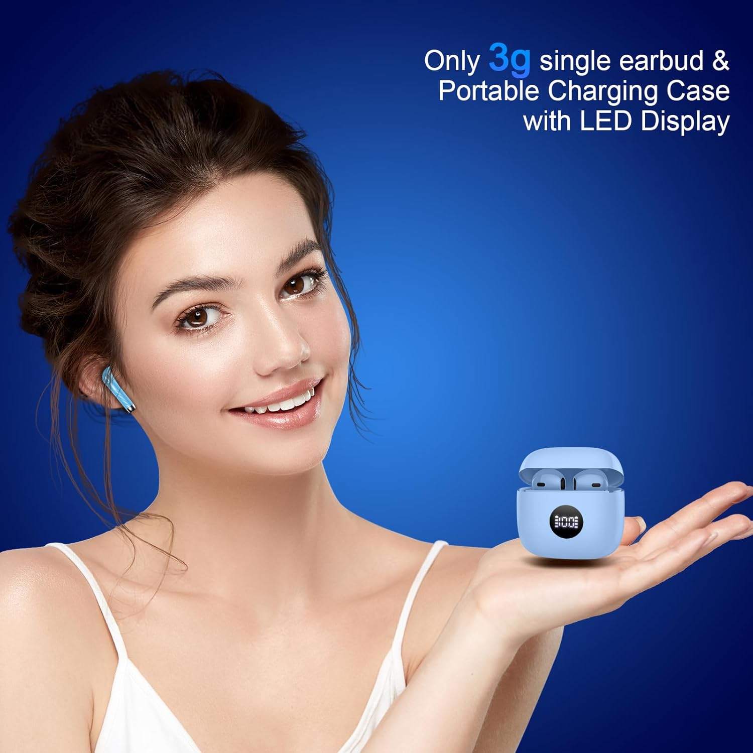- Small size, big possibilities: 3g single earbud, pocket design charging case with LED power display, and 40H playtime: The wireless ear buds feature a portable design and an improved LED display that shows the remaining battery of each head phones and charging case in real-time. And on a full charge of 1H, your earbuds wireless Bluetooth will last up to 8H, plus the fully charged case can provide about 4 recharges for it. Enjoy vibrant sound anytime, anywhere. Perfect for indoor or outdoor.