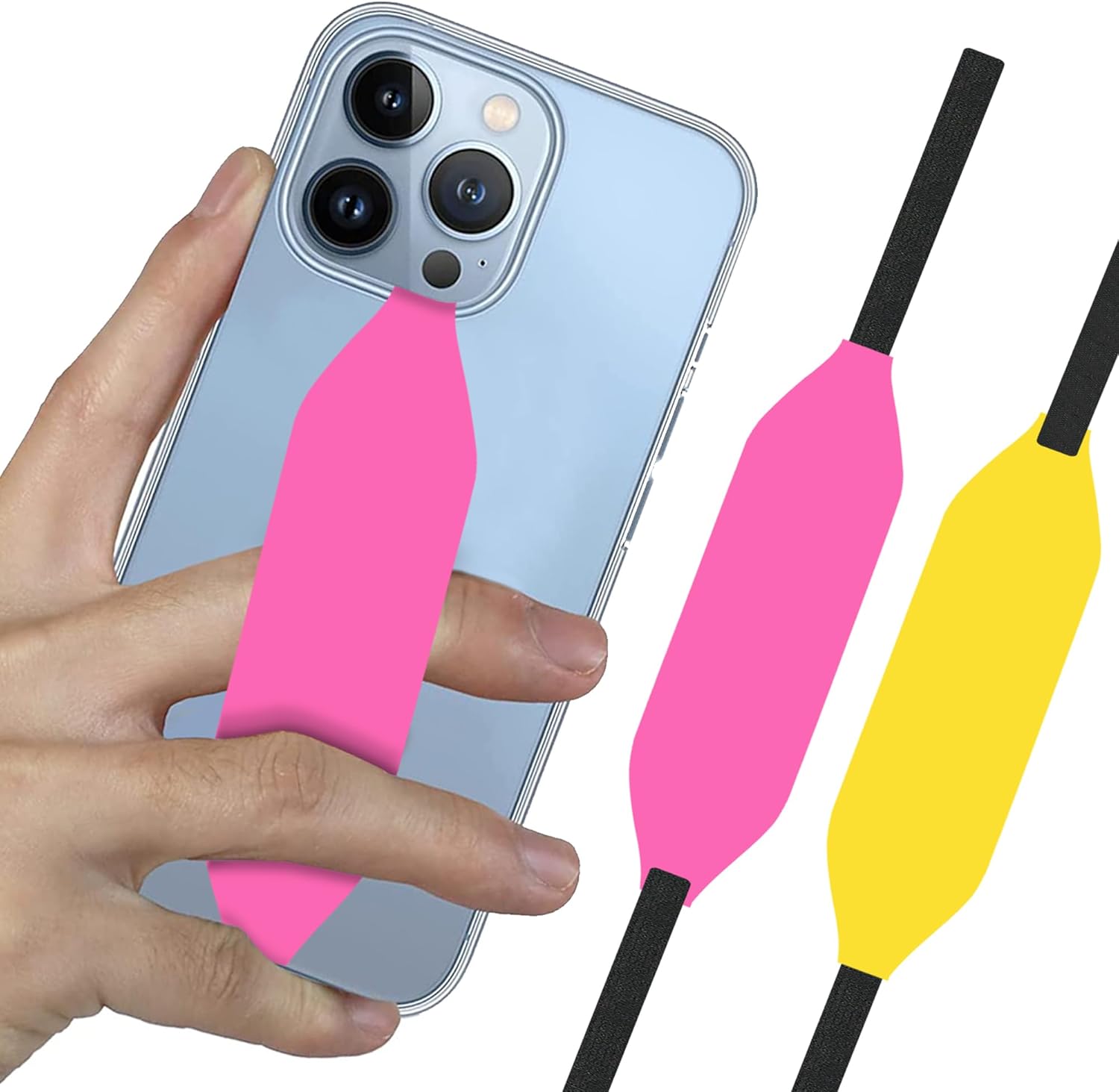 Phone Grip Strap - Reversible Finger Holder for Phone Back, Customizable Anti-Slip Design, Wireless Charging Compatible Detachable Holder for iPhone - Pink & Yellow