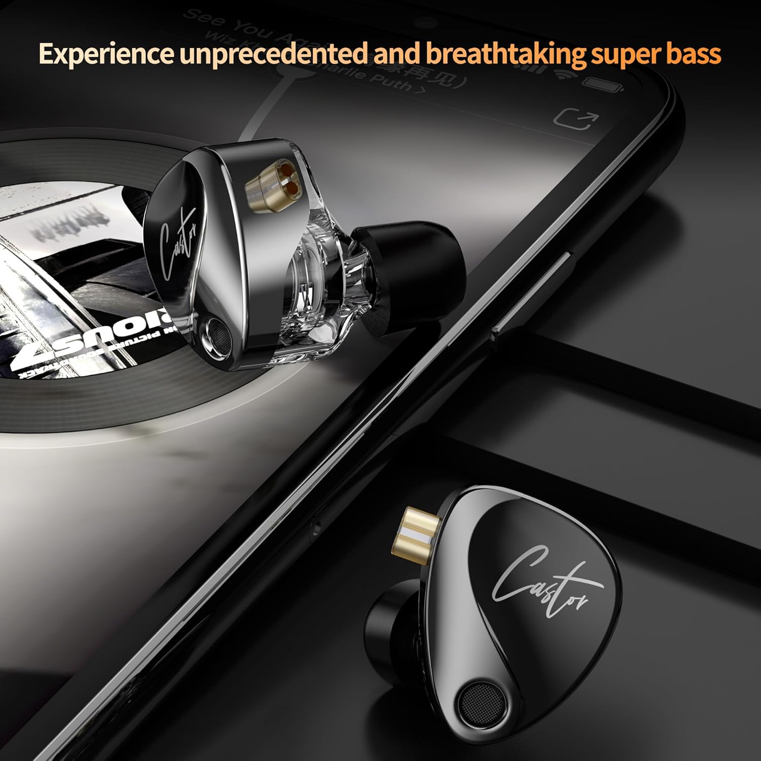 KZ Castor in Ear HiFi Earphone 2DD Dynamic High-end Tunable IEM Earphones in Ear Monitor Headphones with Silicone Tips Detachable Cabel IEMs for Singer Musician DJ On Stage (Black, Without Mic)
