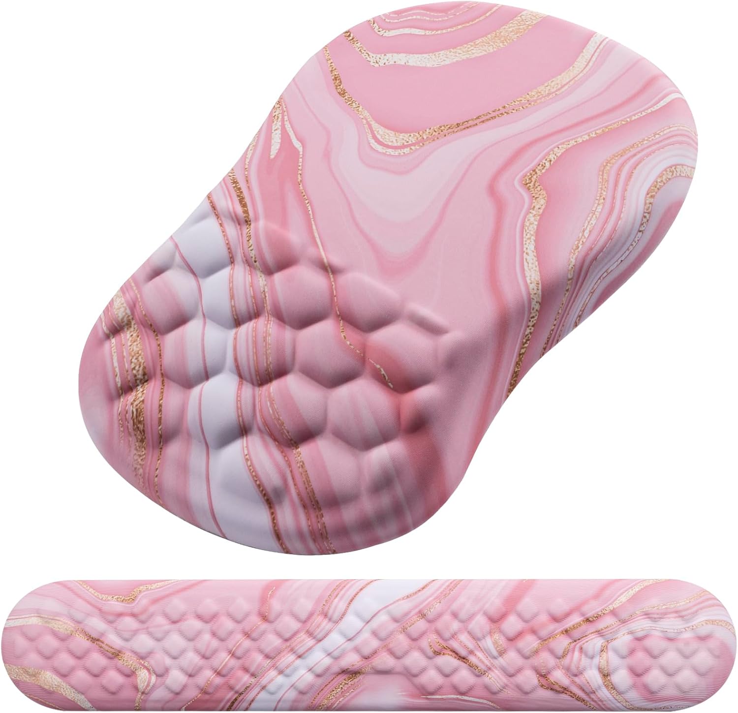 Mouse Pad Wrist Support, Laokiiy 2 in1 Keyboard Wrist Rest+ Ergonomic Mouse Pad, Non-Slip Wrist Rest for Computer Keyboard, Made Easy Typing & Relieve Wrist Pain(Rose Gold Pink Marble)