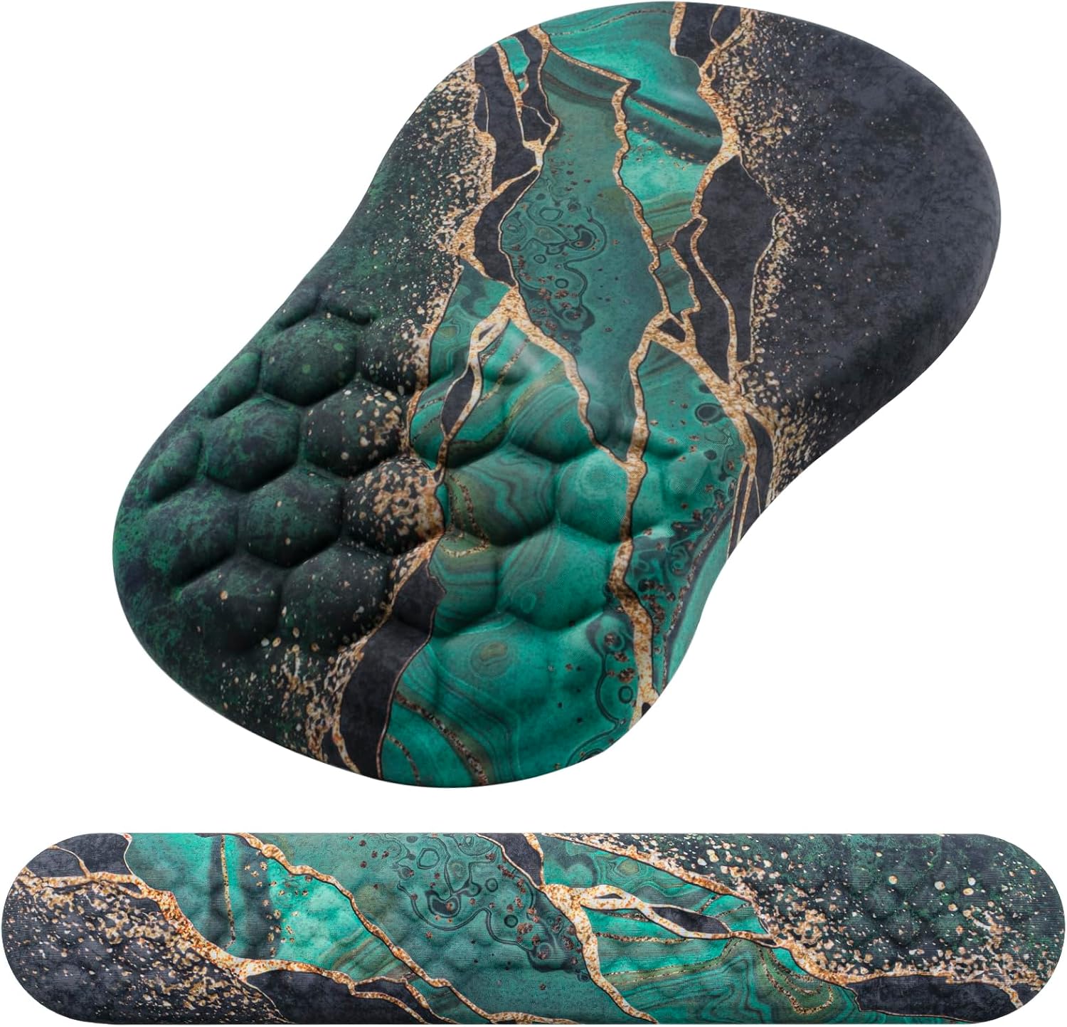 Mouse Pad Wrist Support, Laokiiy 2 in1 Keyboard Wrist Rest+ Ergonomic Mouse Pad, Non-Slip Wrist Rest for Computer Keyboard, Made Easy Typing & Relieve Wrist Pain(Green Gold Black Marble)