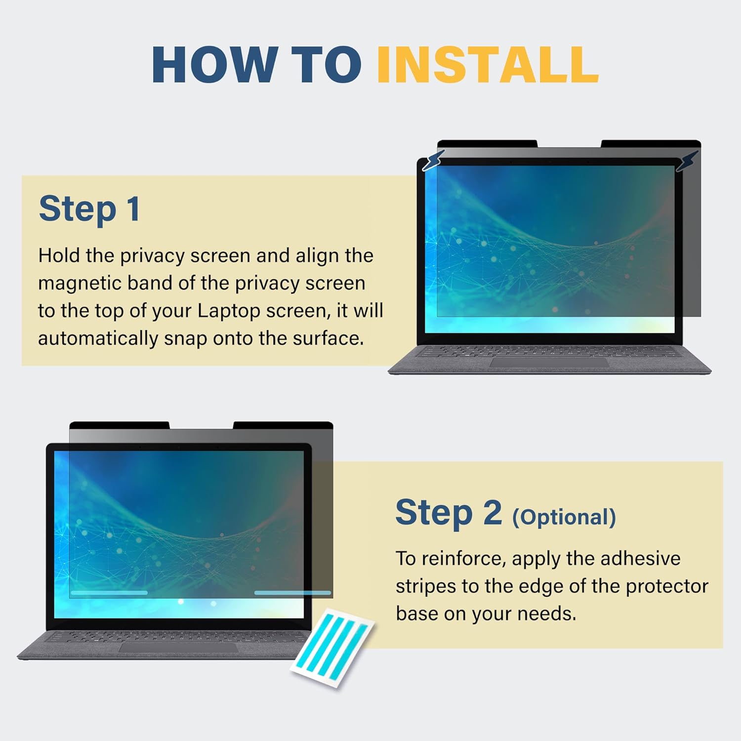 - 【Automatic Snap-on Magnetic Attachment】Simply place the privacy filter along the top of your Microsoft Surface Laptop and let its integrated magnets attach onto your screen. No adhesive. Easy to remove and reattach whenever you need.