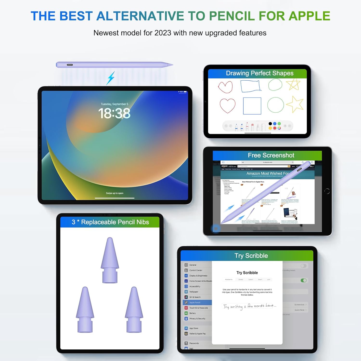 - DESIGN FOR IPAD 2018-2025 - This pencil for ipad is compatible with ipad 6/7/8/9/10/11 generation, ipad Air (M3/3/4/5 generation), ipad Mini (5/6 generation), ipad pro 11"/12.9", this is definitely the best alternative to the pencil 2nd generation. Note: magnetic charging is only for ipad Air 4/5, ipad Mini 6, ipad pro 11/12.9 inch available. If you do not know how to confirm the ipad model number, please contact us.