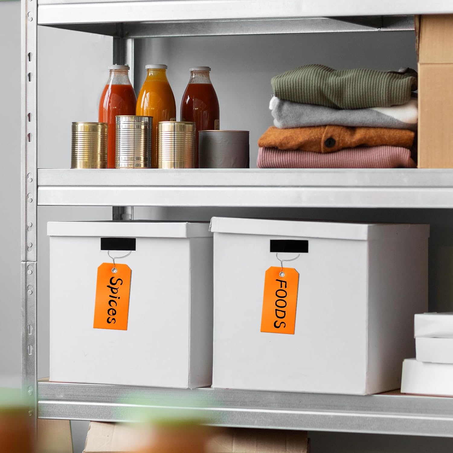 100 Pcs Marking Tags with String Rectangle Plastic Hang Tags Waterproof Orange Tags Wire Tags Write On Tie On Labels Tags for Auto Parts Luggage Garage Inventory DIY Price (Orange, 4 3/4" x 2 3/8")