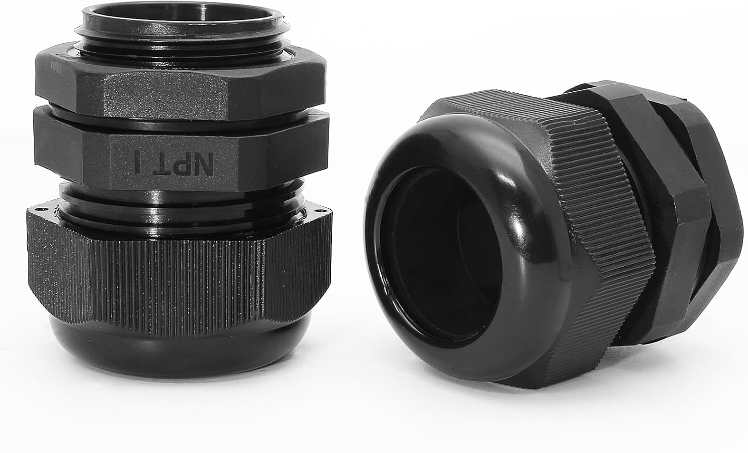 1" NPT Nylon Cable Glands, IP68 Waterproof Adjustable Cord Grip Cable Connector Strain Relief Wire Protectors for 18-25mm Cable Diameter, 2 Pcs, Black