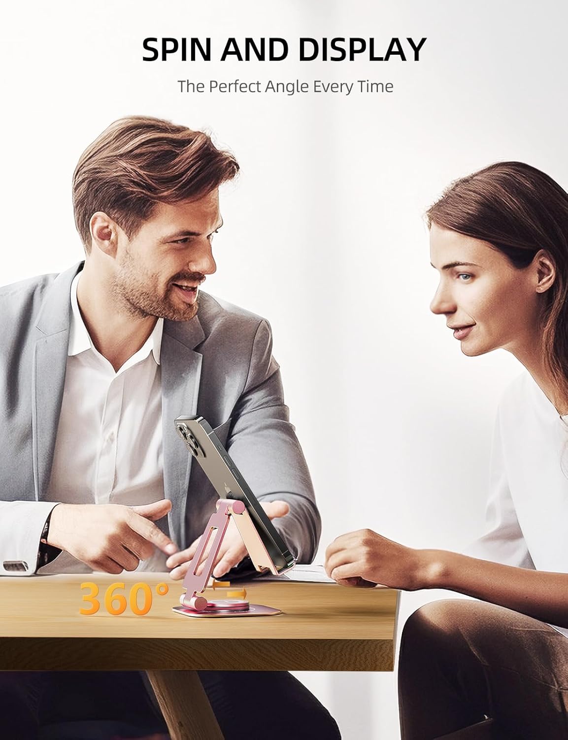 - 360° Rotatable: This phone stand offers a full 360° rotation, allowing you to adjust the viewing angle to your preference effortlessly. Liberates your hands comfort whether you're watching videos, video calling, or sharing your screen.