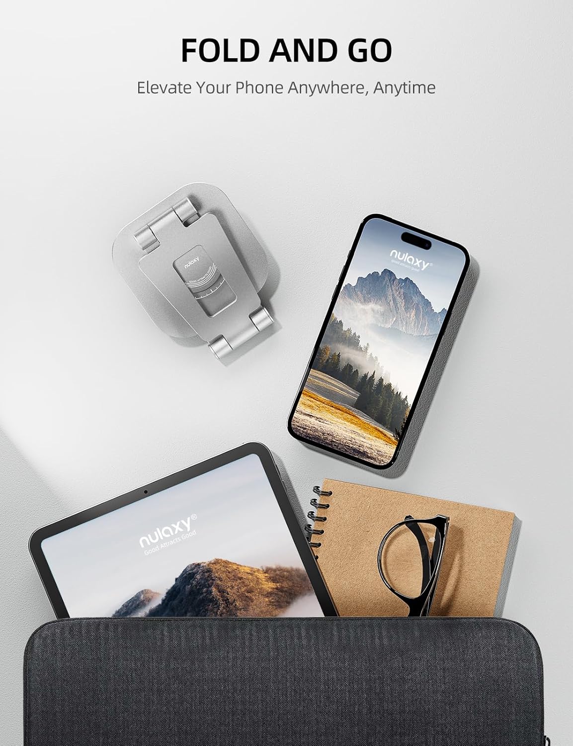 - Find Your Perfect Viewing Angle: With adjustable angles, Nulaxy phone stand for desk ensures optimal comfort for every user. Whether you prefer a vertical or horizontal orientation, find the perfect angle for browsing, reading, or gaming, and enjoy a strain-free experience.