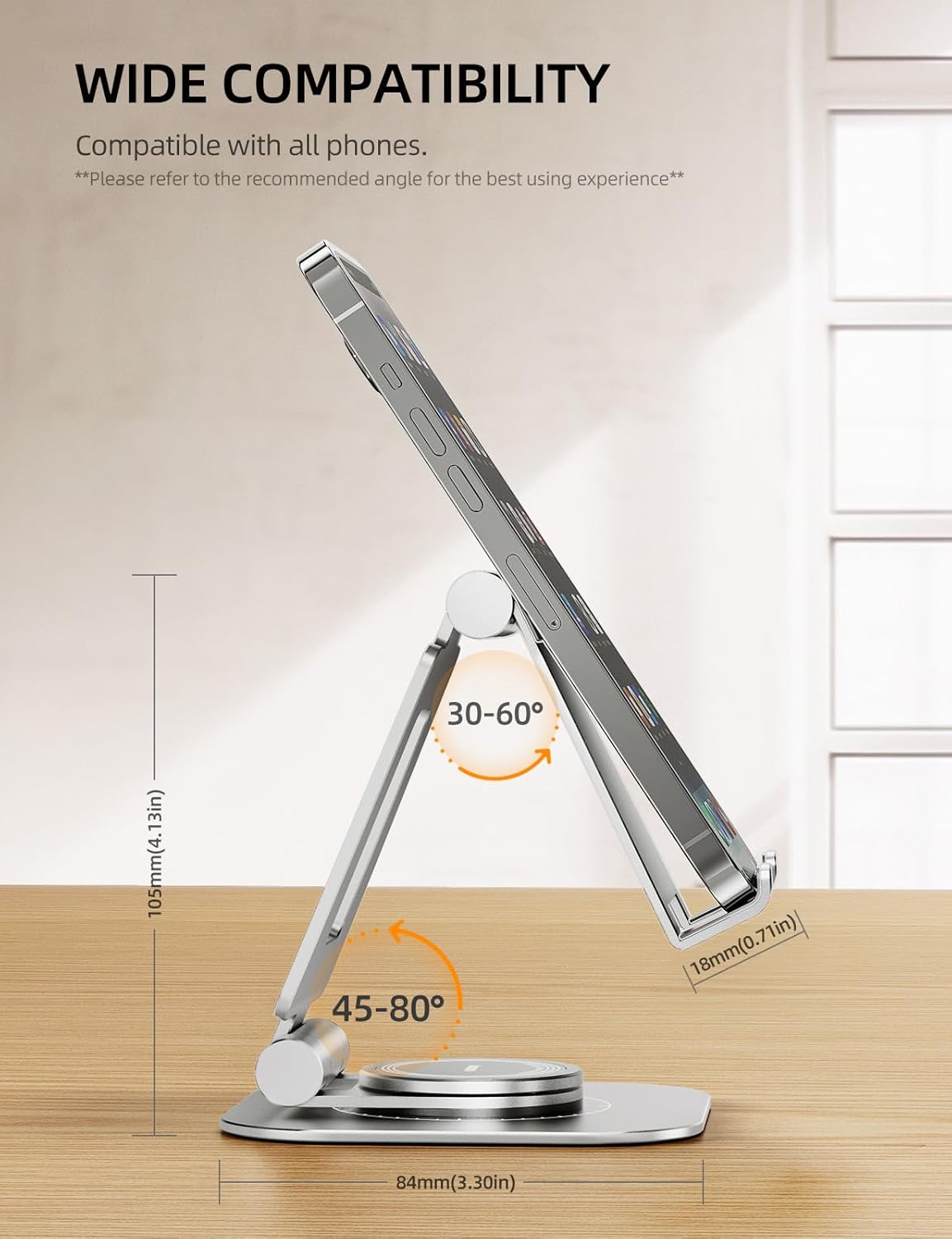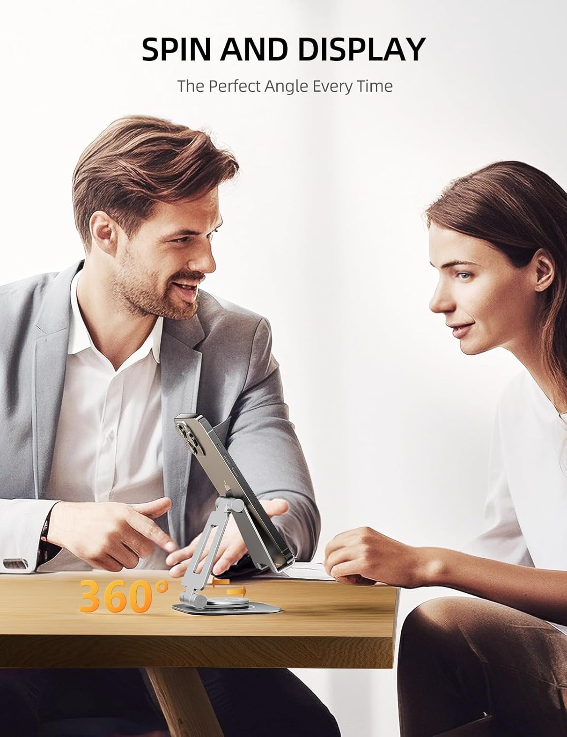 - 360° Rotatable: This phone stand offers a full 360° rotation, allowing you to adjust the viewing angle to your preference effortlessly. Liberates your hands comfort whether you're watching videos, video calling, or sharing your screen.