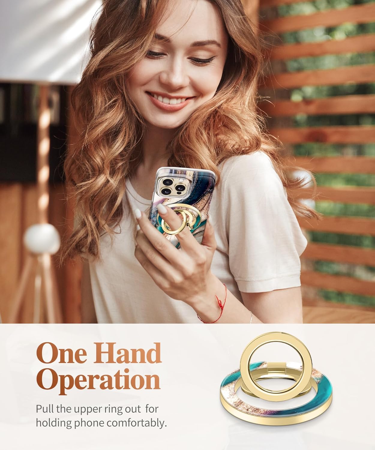 - [Premium & Comfortable Grip] The cell phone stand is made of high-quality zinc alloy metal material with electroplated coating that offers ultra-durability and unfading colors. Stylish Marble base adds style to your phone case. This ring is more ergonomically designed for a comfortable and secure grip. Perfectly adapted to various occasions of one-handed use, avoid phone drops.