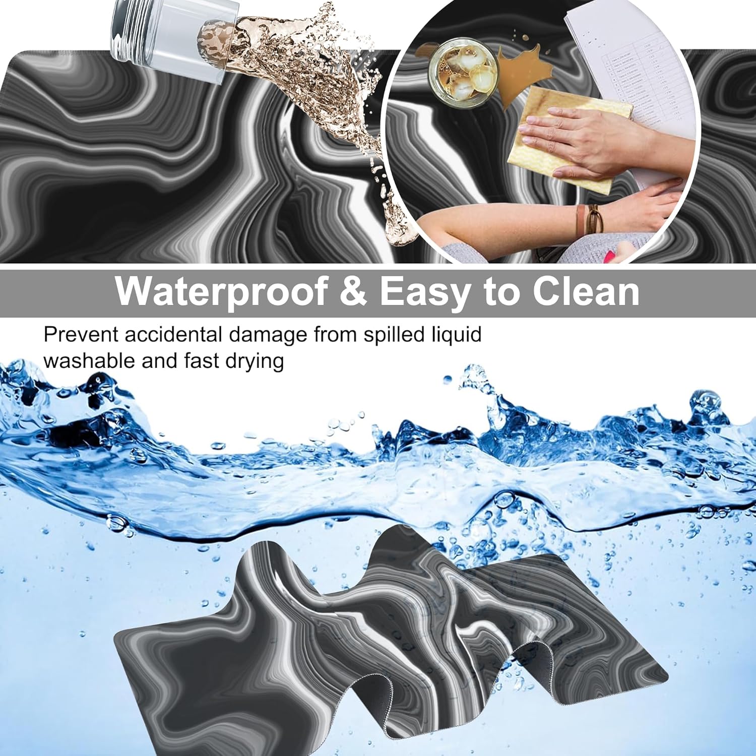 Black and White Marble Desk Mat,Large Marble Ink Texture Gaming Keyboard Mouse Pad,Non-Slip Rubber Base Desk Pad Thick Stitched Edges Waterproof Mousepad Mouse Mat 31.5"x11.8"